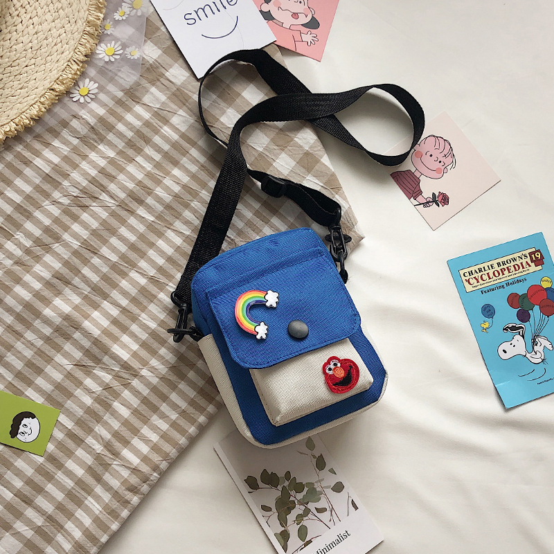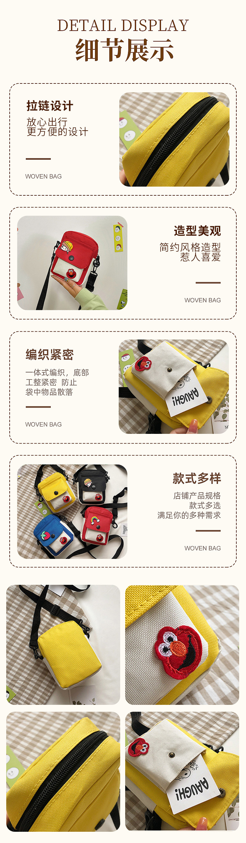 2025년 신상품 세서미 스트리트 크로스백 여성용 캔버스 만화 작은 숄더백 학생용 싱글 숄더백 상큼하고 달콤한 작은 가방스토어 가기
