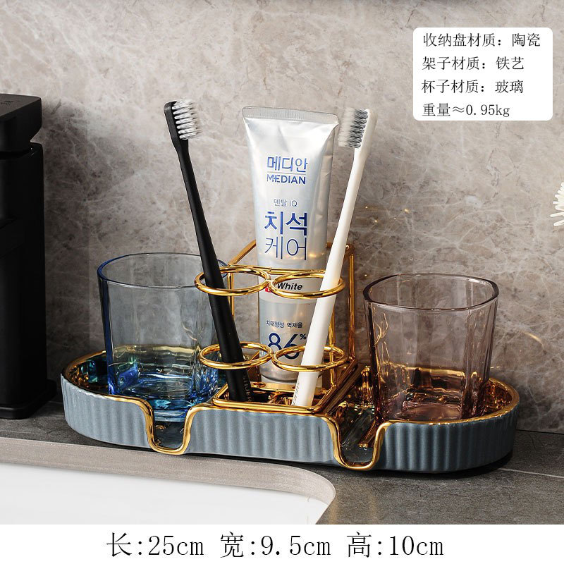 • 2 개의 낮은 컵이있는 골드 프레임이있는 회색 보관