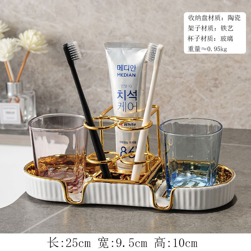 • 2 개의 낮은 컵이있는 골드 프레임이있는 흰색 보관
