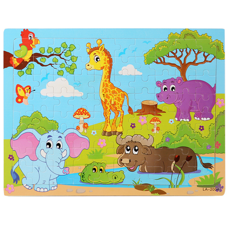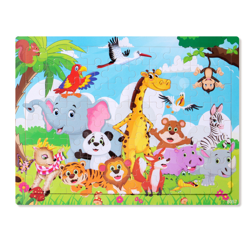 나무 80 조각 퍼즐 어린이 동물 만화 동화 비행기 퍼즐 아기 조기 교육 교육 빌딩 블록 장난감