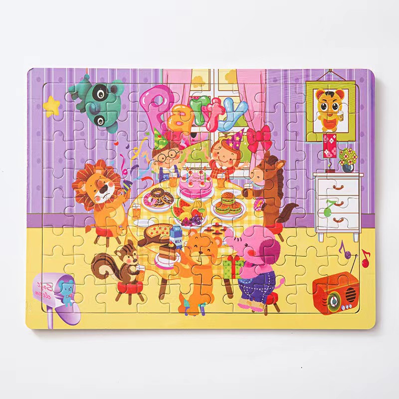 나무 80 조각 퍼즐 어린이 동물 만화 동화 비행기 퍼즐 아기 조기 교육 교육 빌딩 블록 장난감스토어 가기