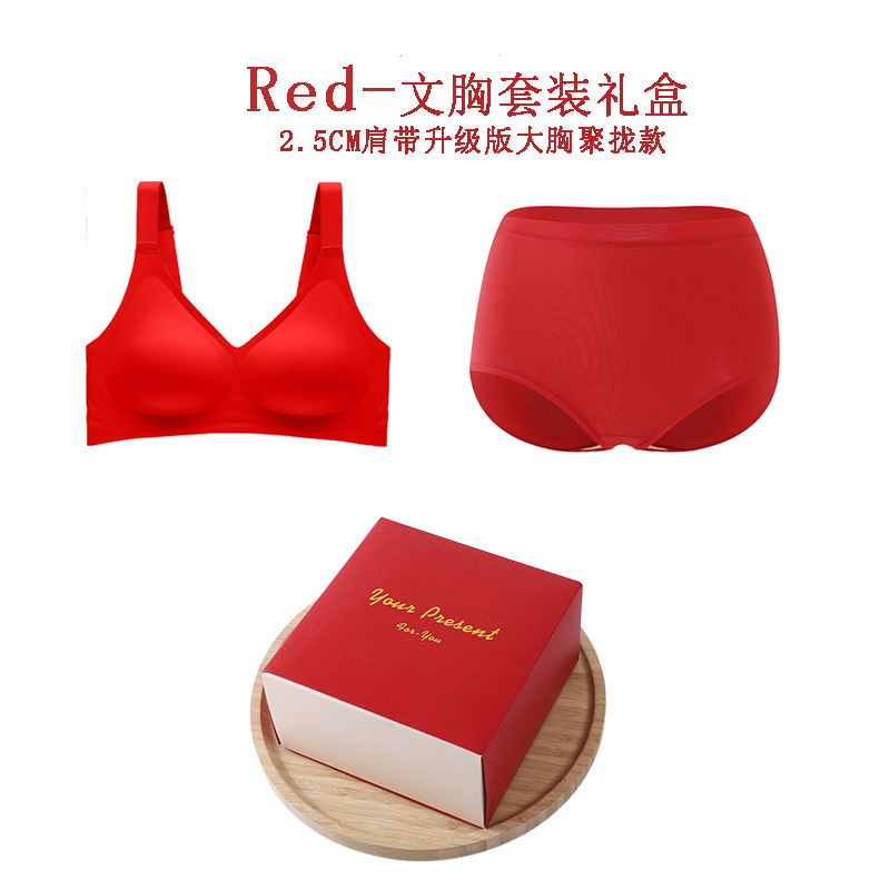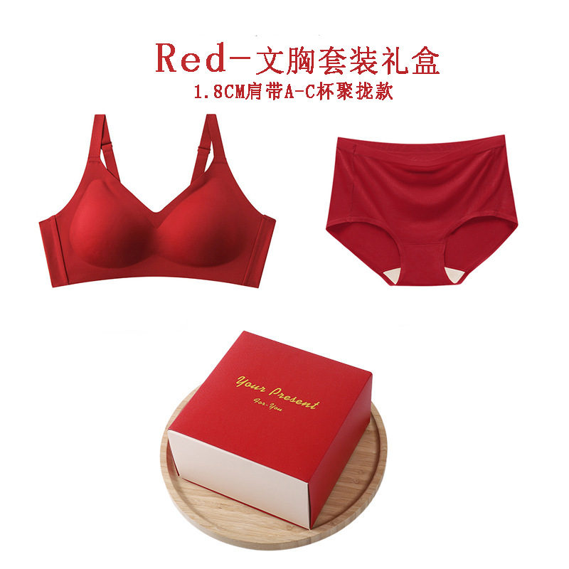 • 1.8cm 어깨 끈 빨간 브래지어 세트 선물 상자