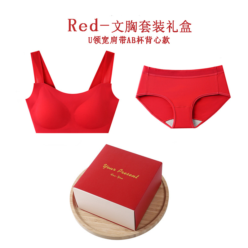 • U-넥 와이드 숄더 스트랩 레드 브라 세트 선물 상자