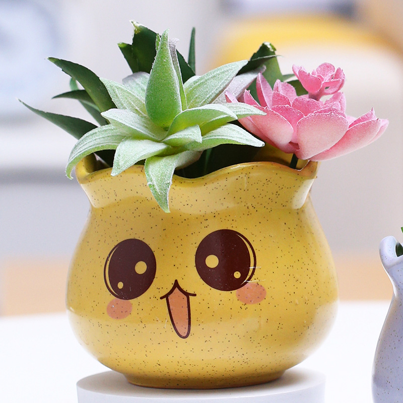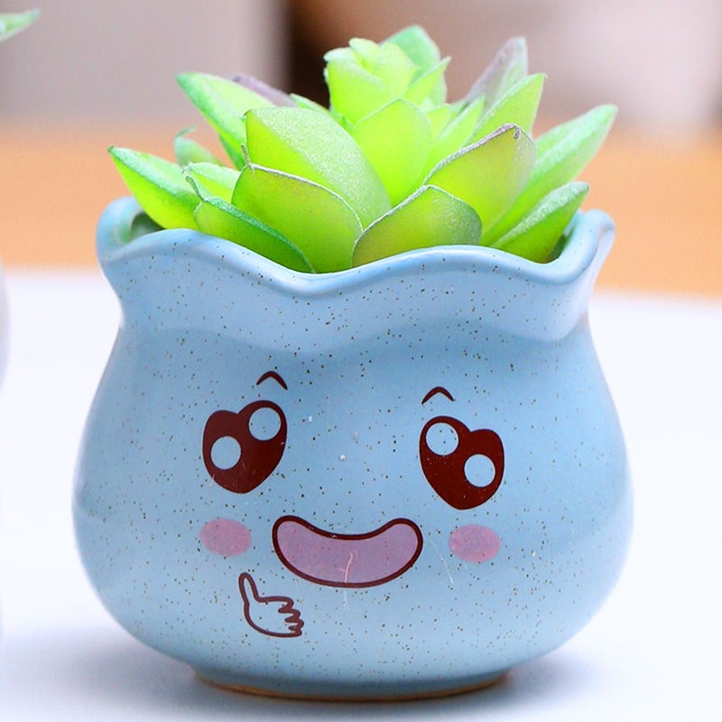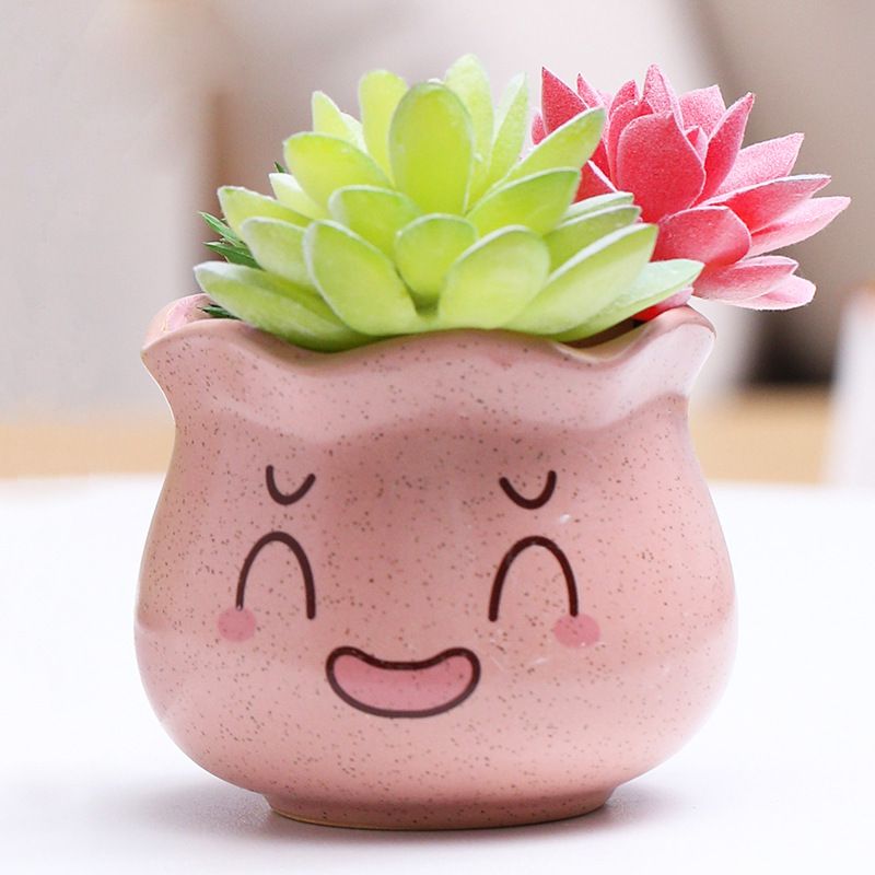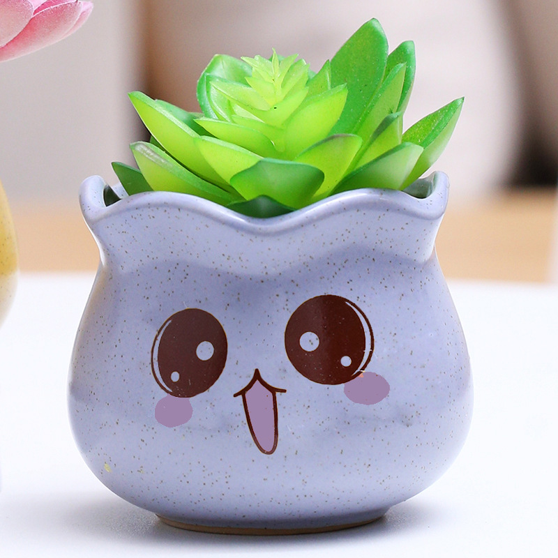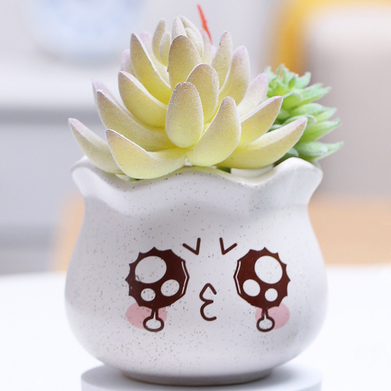 크로스 보더 마카롱 화분 귀여운 표현 다육 냄비 간단한 작은 신선한 인공 식물 세라믹 냄비스토어 가기