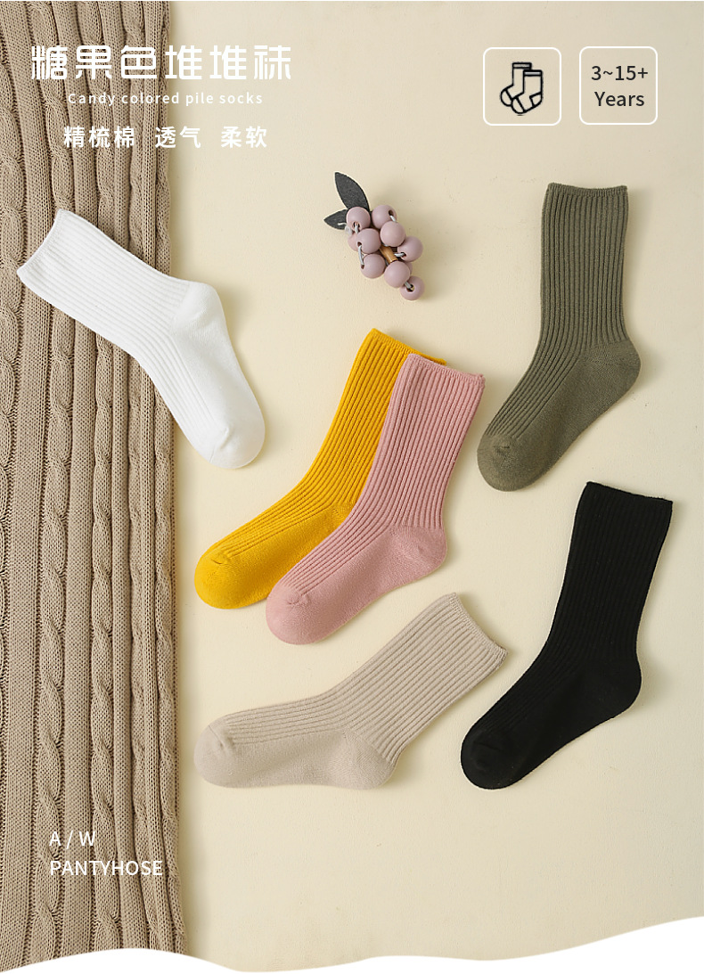 25 봄과 가을 새 평야 더블 바늘 아기 양말 병합 면 양말 남녀 양말 한국 스택 양말