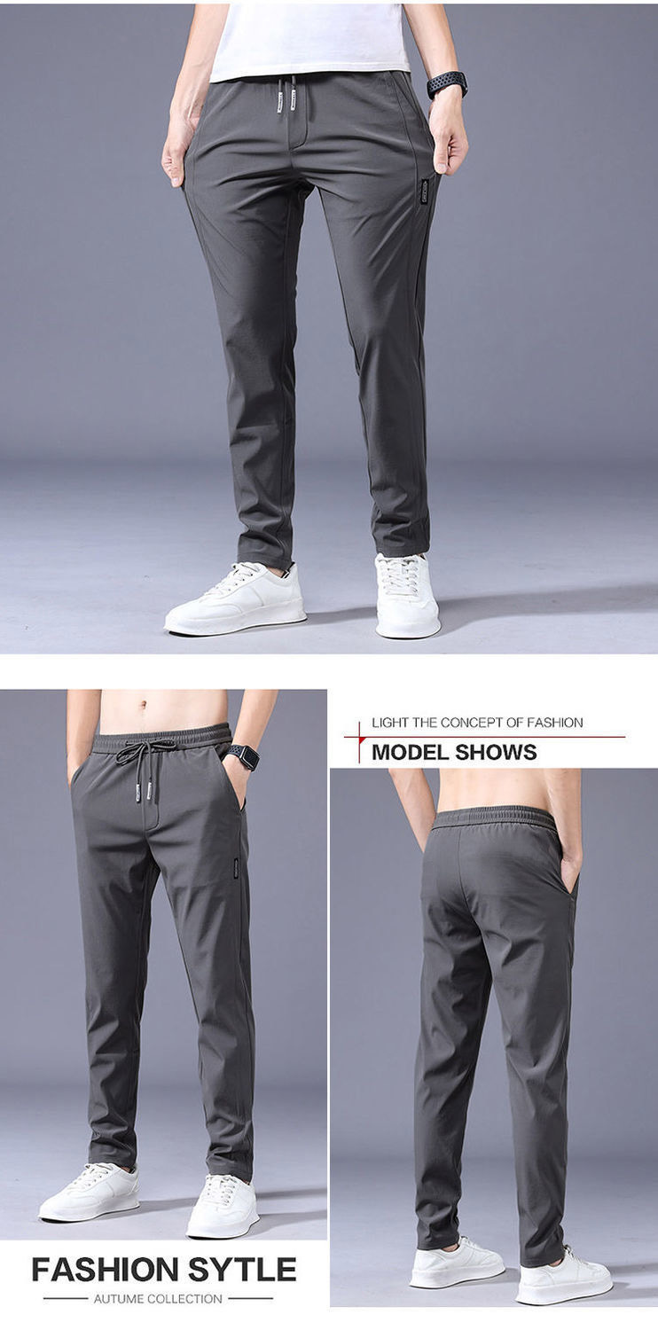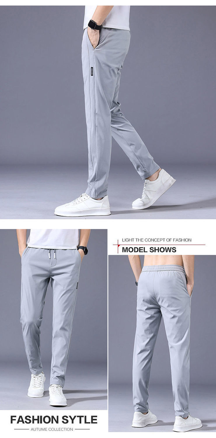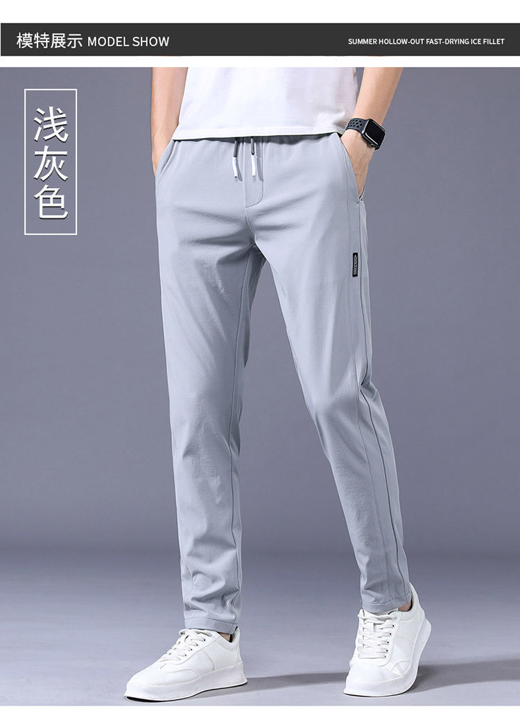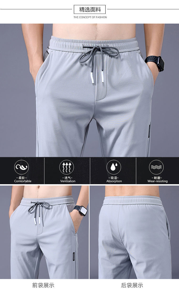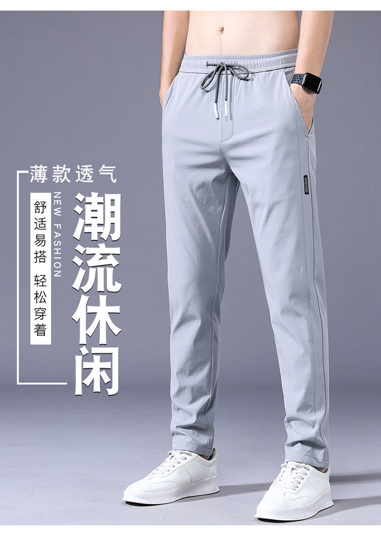 남성용 아이스 실크 바지 여름용 대형 사이즈 스포츠 바지 신축성 통기성 청년용 얇은 캐주얼 바지 캐주얼 패션스토어 가기