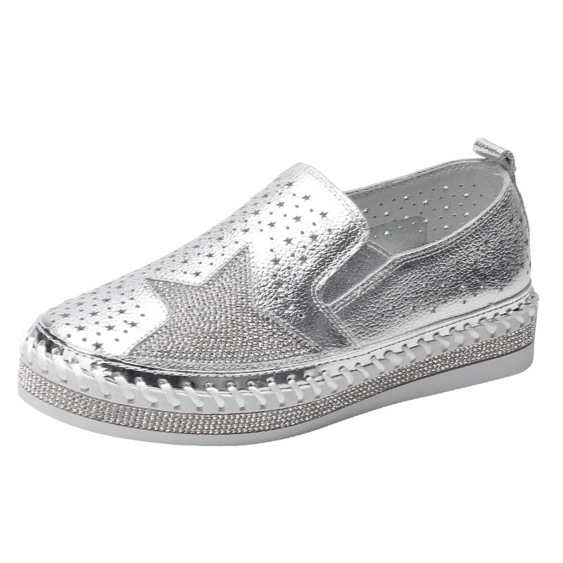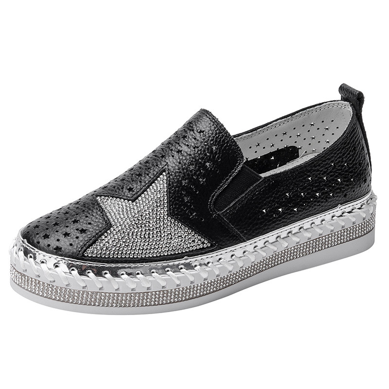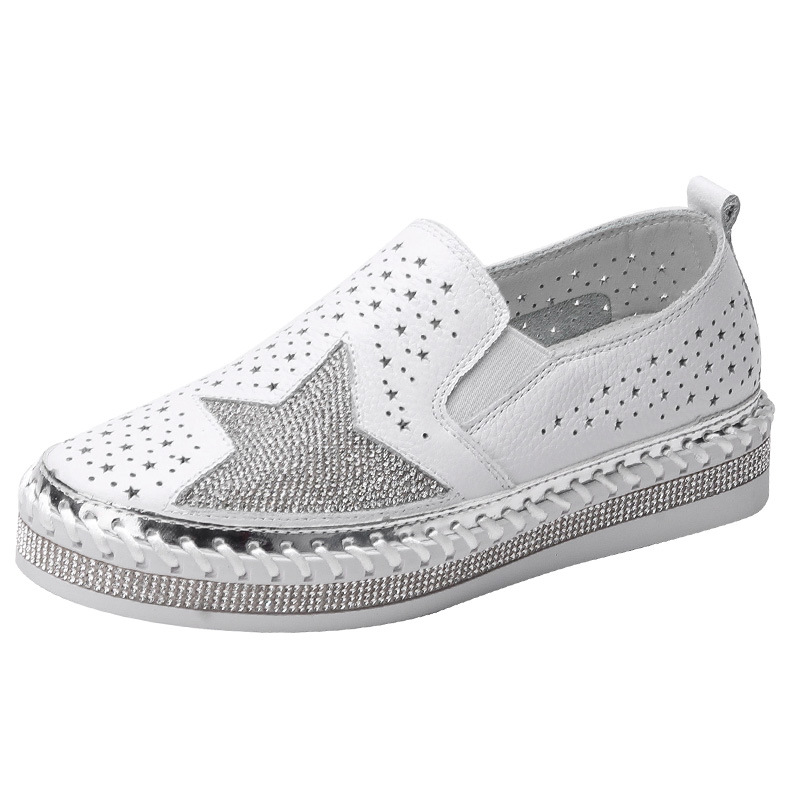 528-26 소가죽 라인석 로퍼 여성용 새로운 중공 통기성 플랫 캐주얼 신발 슬립온 게으른 신발