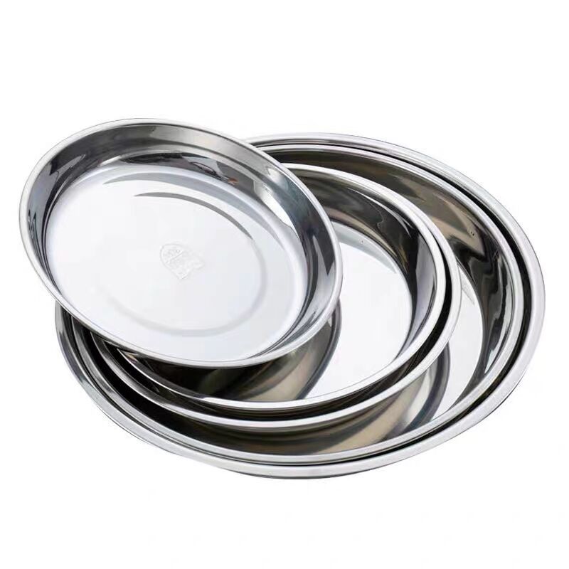 304 스테인레스 스틸 두꺼운 차가운 피부 플레이트 디스크 플랫 바닥 만두 접시 가정용 접시 얕은 접시 바베큐 접시 디너 플레이트