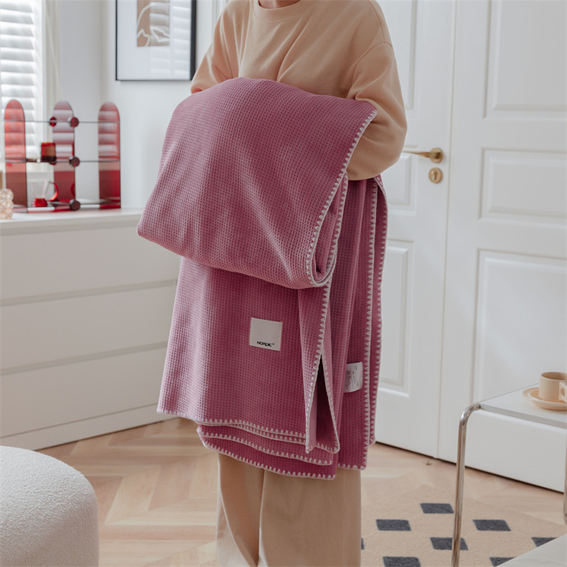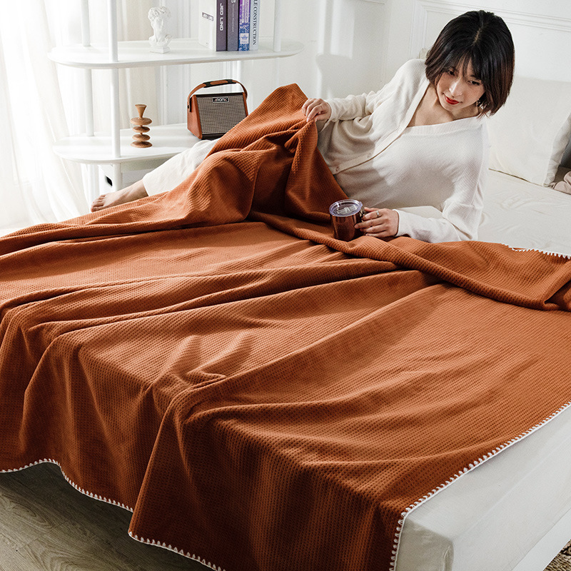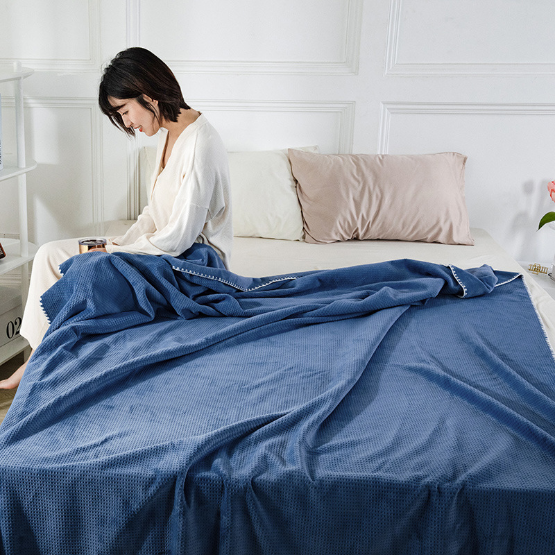 2025 신제품 와플 두꺼운 이중 레이어 벨벳 담요 여름 사무실 소파 레저 담요 커버 담요 도매 및 배송스토어 가기