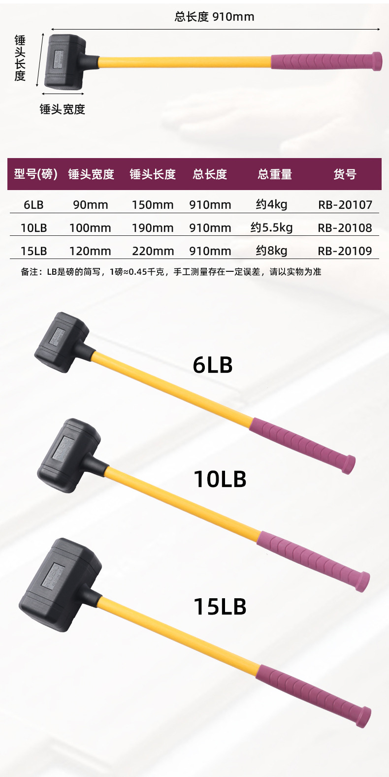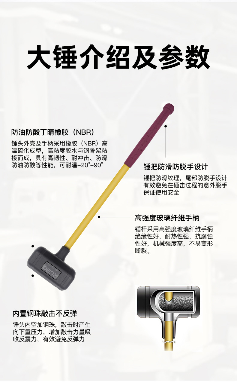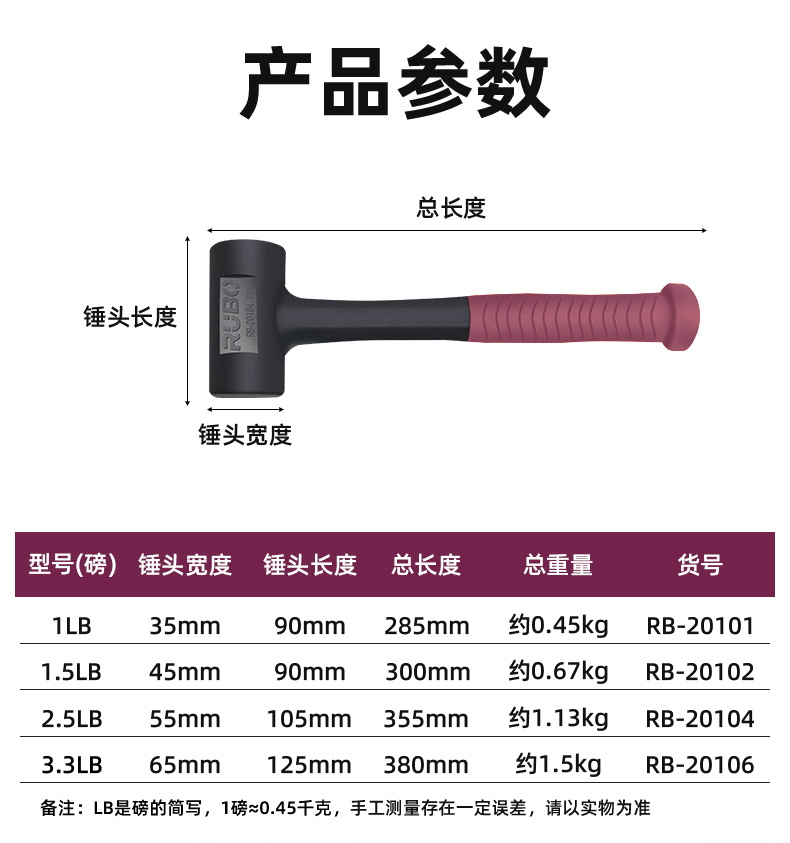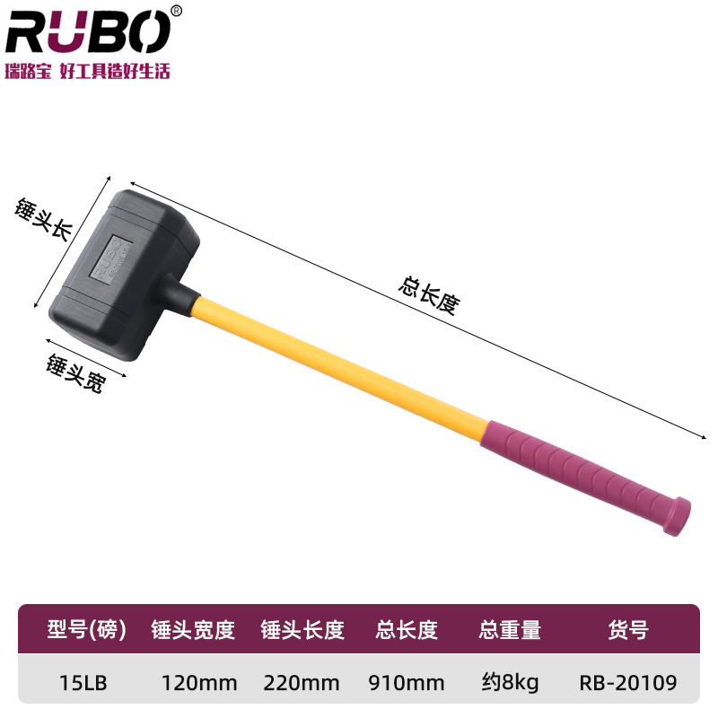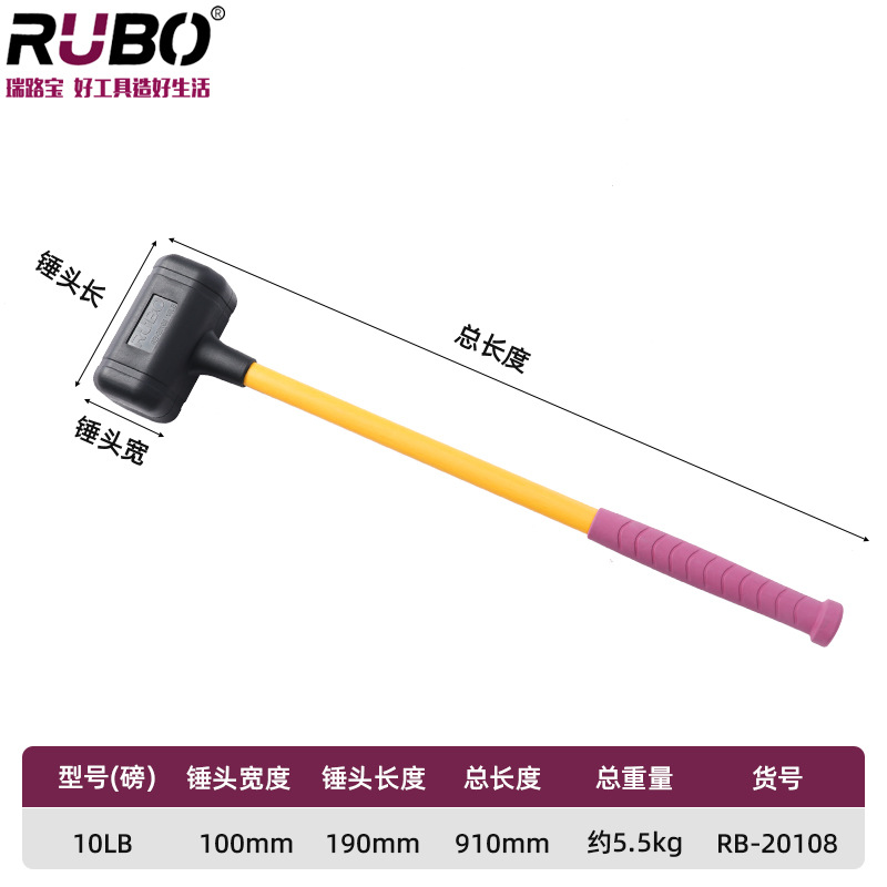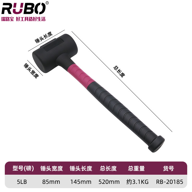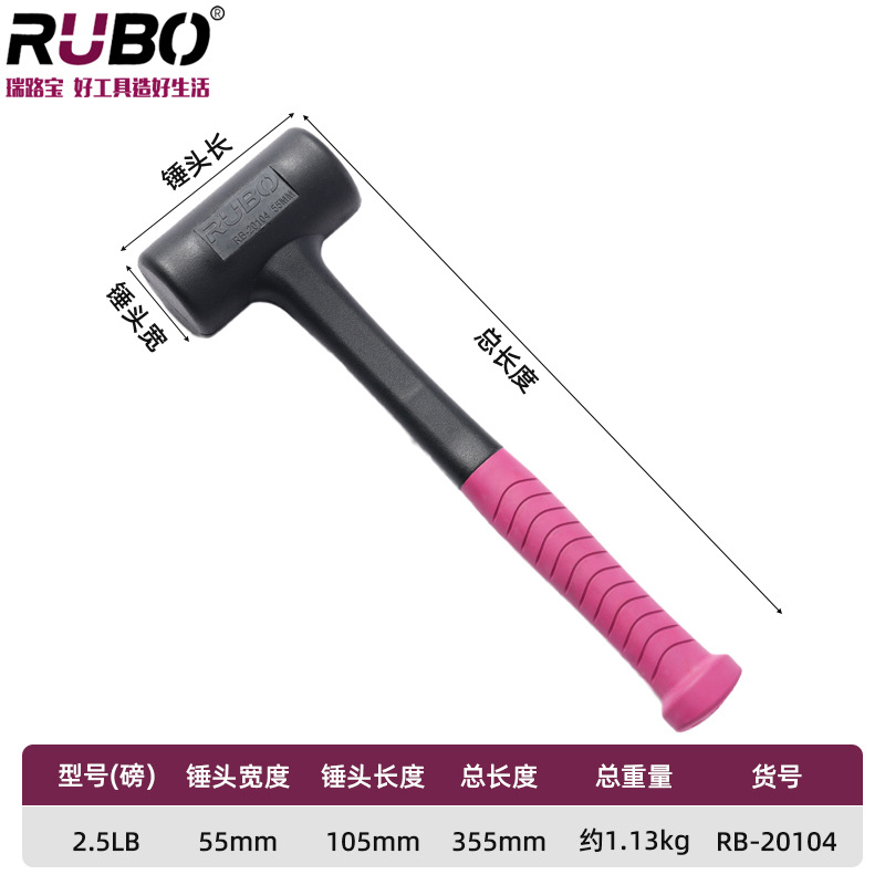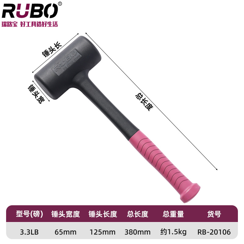 RUBO 비탄성 고무 망치 타일 몰드 베어링 설치 망치 충격 방지 고무 샴페인 망치 고무 망치