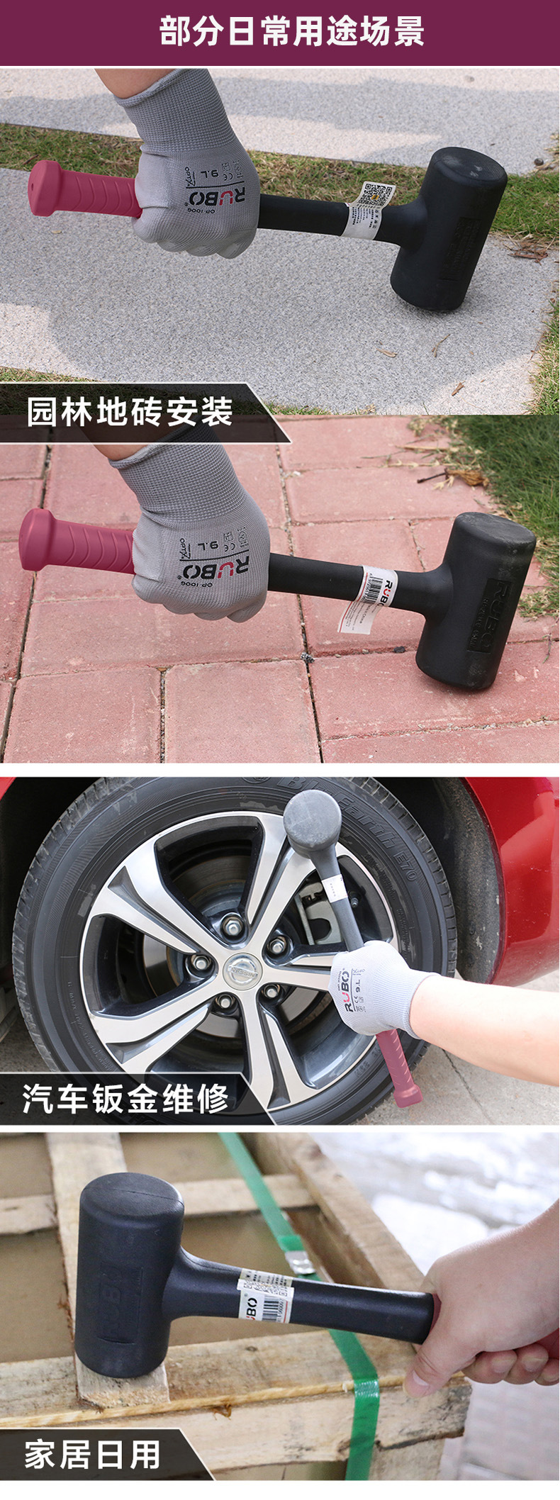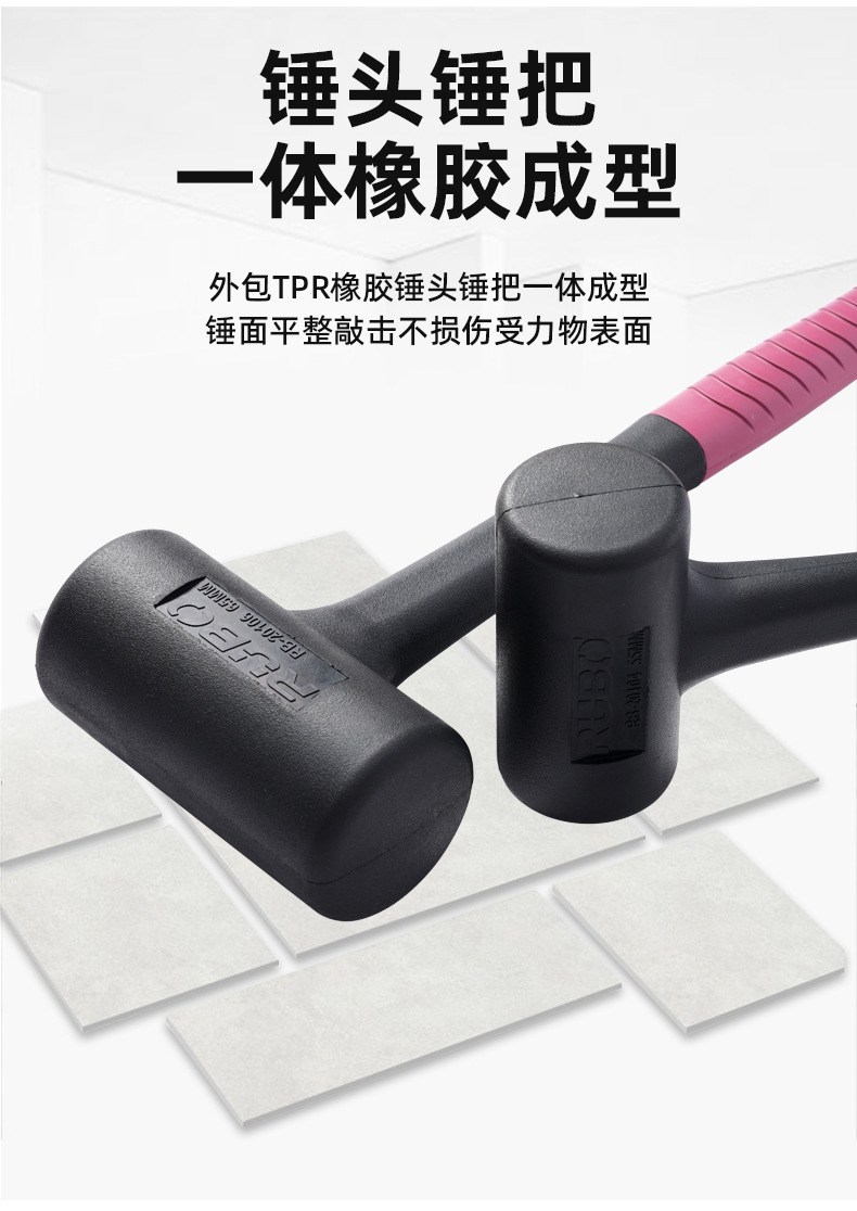 RUBO 비탄성 고무 망치 타일 몰드 베어링 설치 망치 충격 방지 고무 샴페인 망치 고무 망치스토어 가기