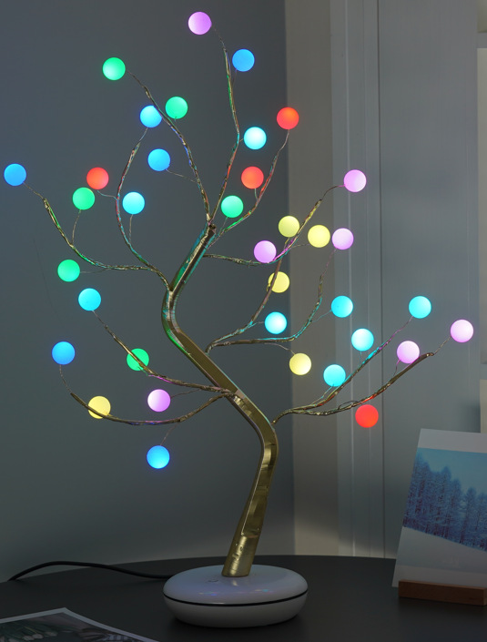 • 36L 안개 흰색 둥근 구슬 나무 램프 다채로운 RGB 원격 제어