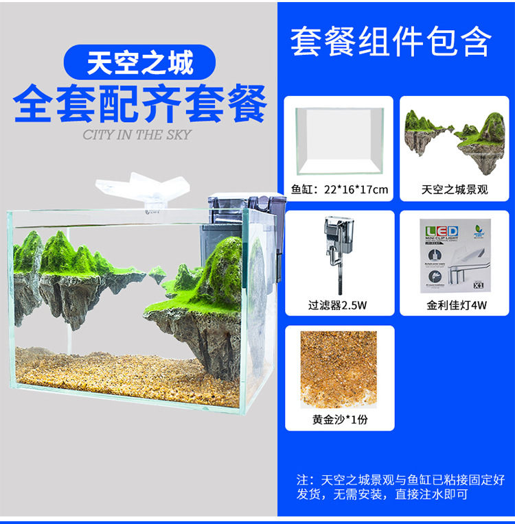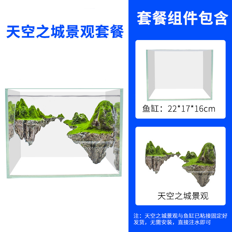 스카이 시티 어항 조경 패키지 잔디 탱크 크리 에이 티브 미니 서스펜션 리얼 스톤 장식 장식품 물과 땅 탱크 재료스토어 가기