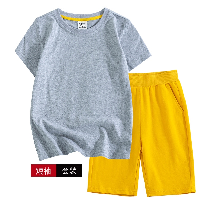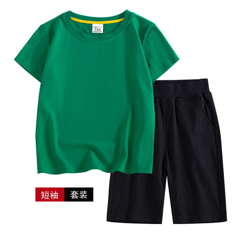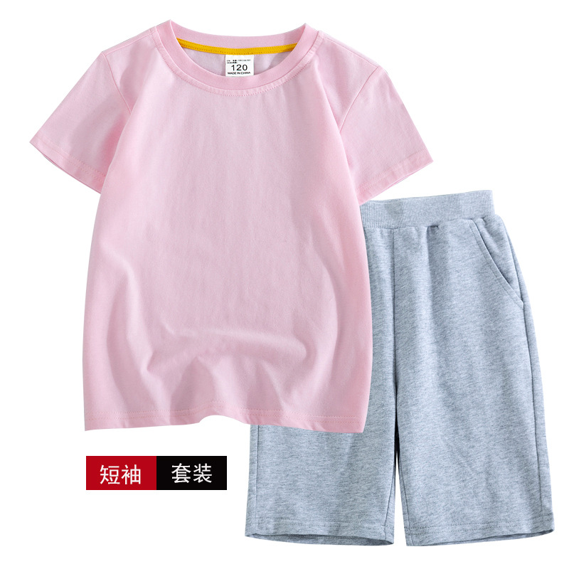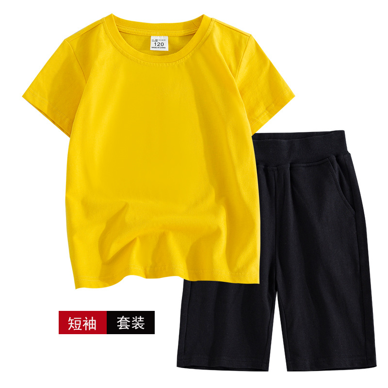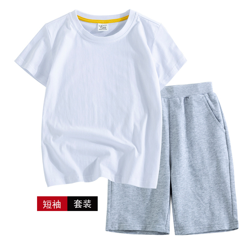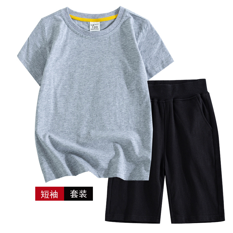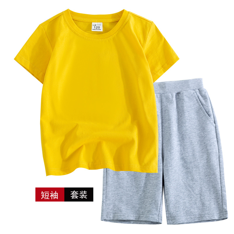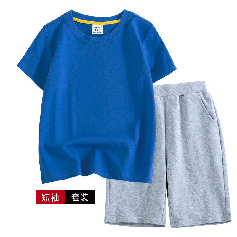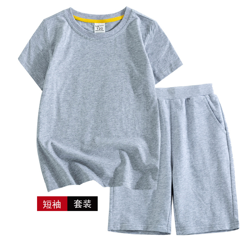 어린이 단색 반팔 티셔츠 바지 세트 여름 새 소년 담요 캐주얼 스포츠 얇은 투피스 세트