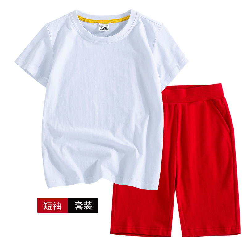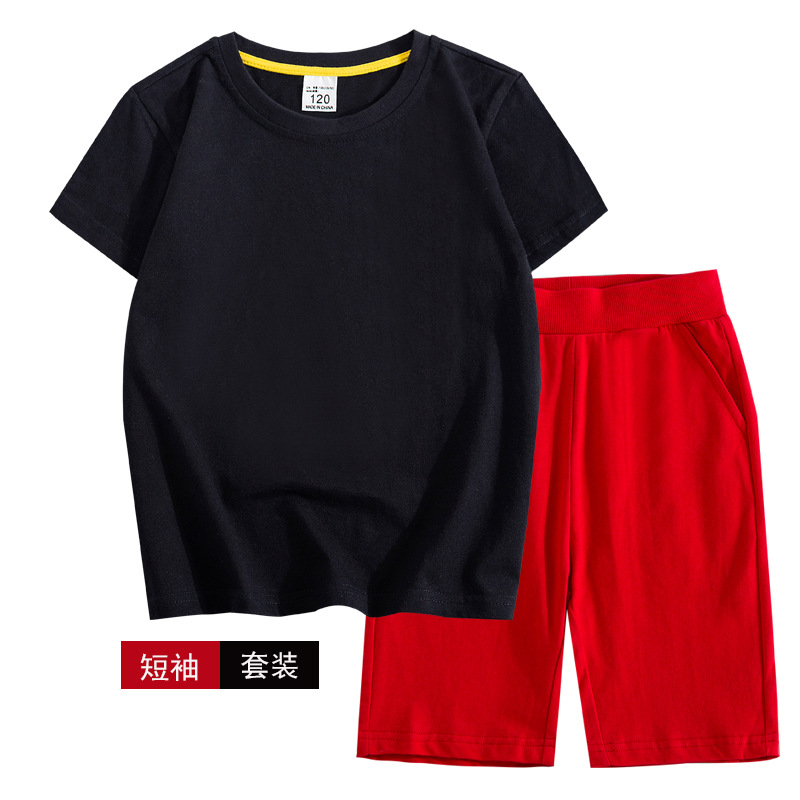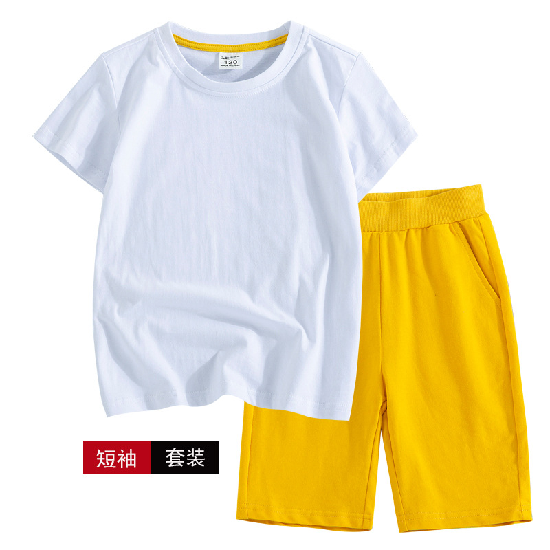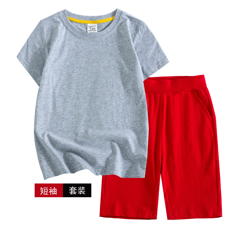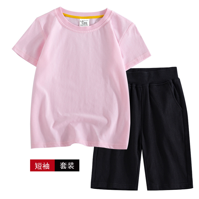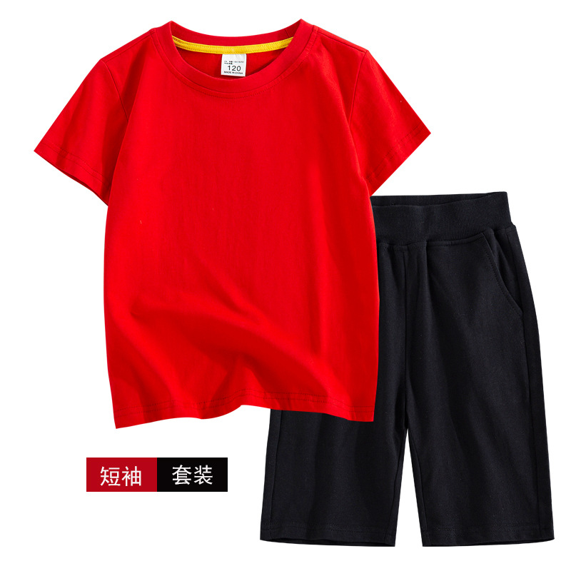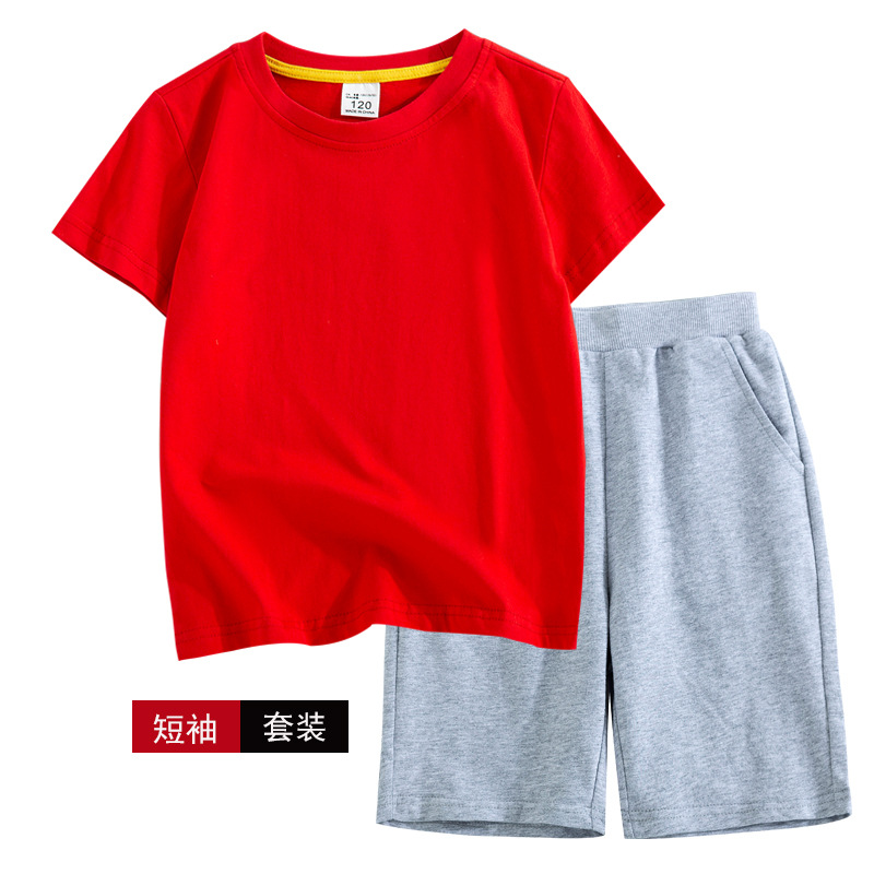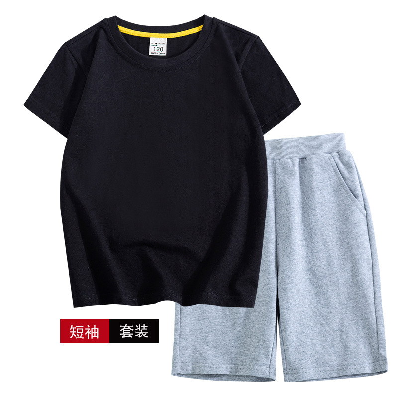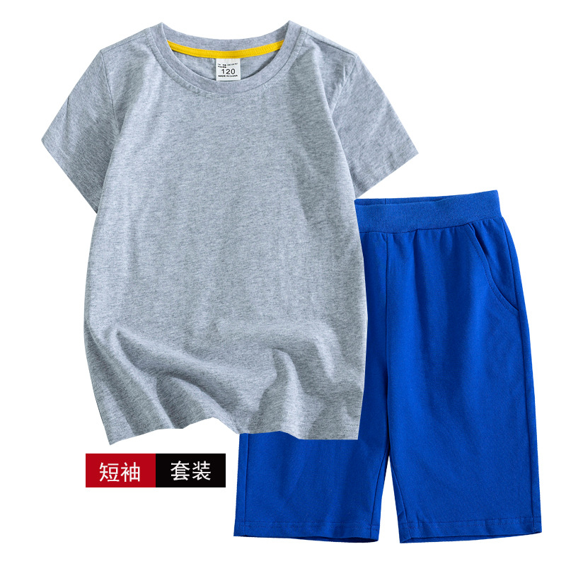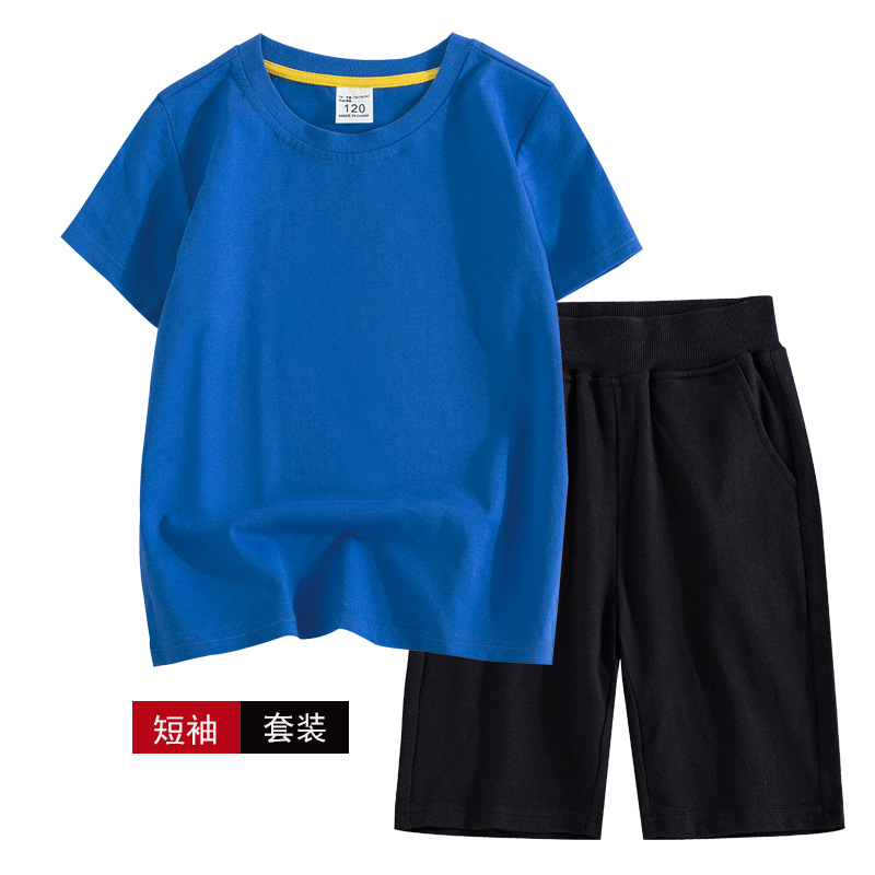 어린이 단색 반팔 티셔츠 바지 세트 여름 새 소년 담요 캐주얼 스포츠 얇은 투피스 세트