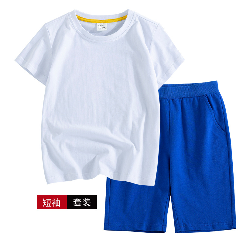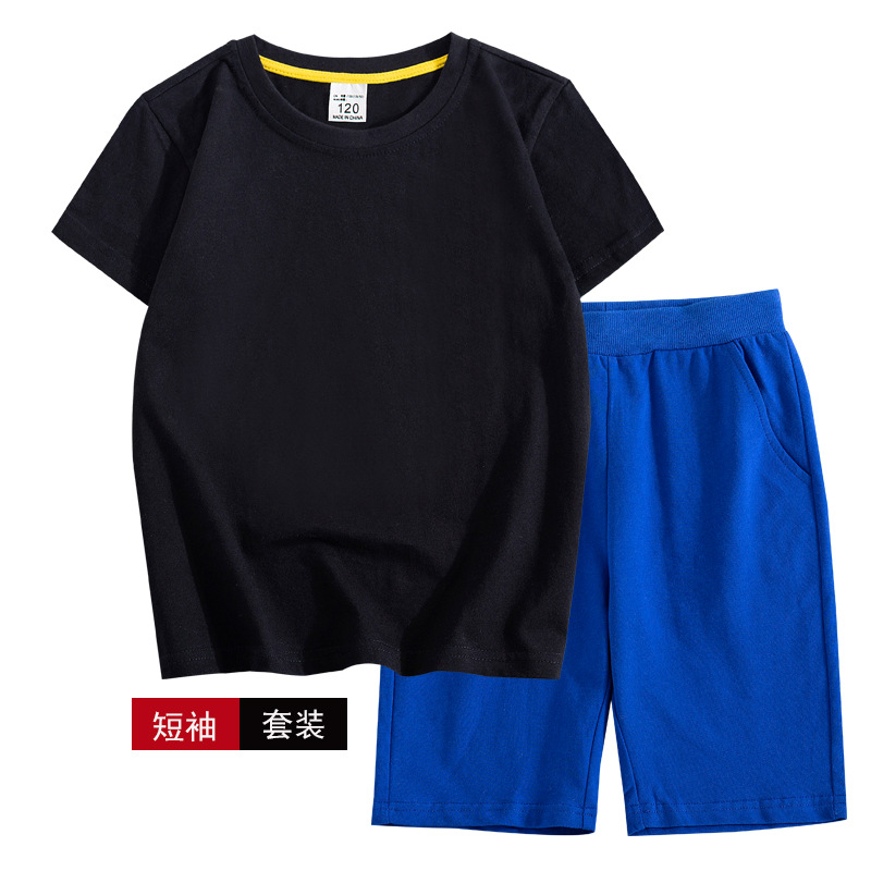 어린이 단색 반팔 티셔츠 바지 세트 여름 새 소년 담요 캐주얼 스포츠 얇은 투피스 세트스토어 가기