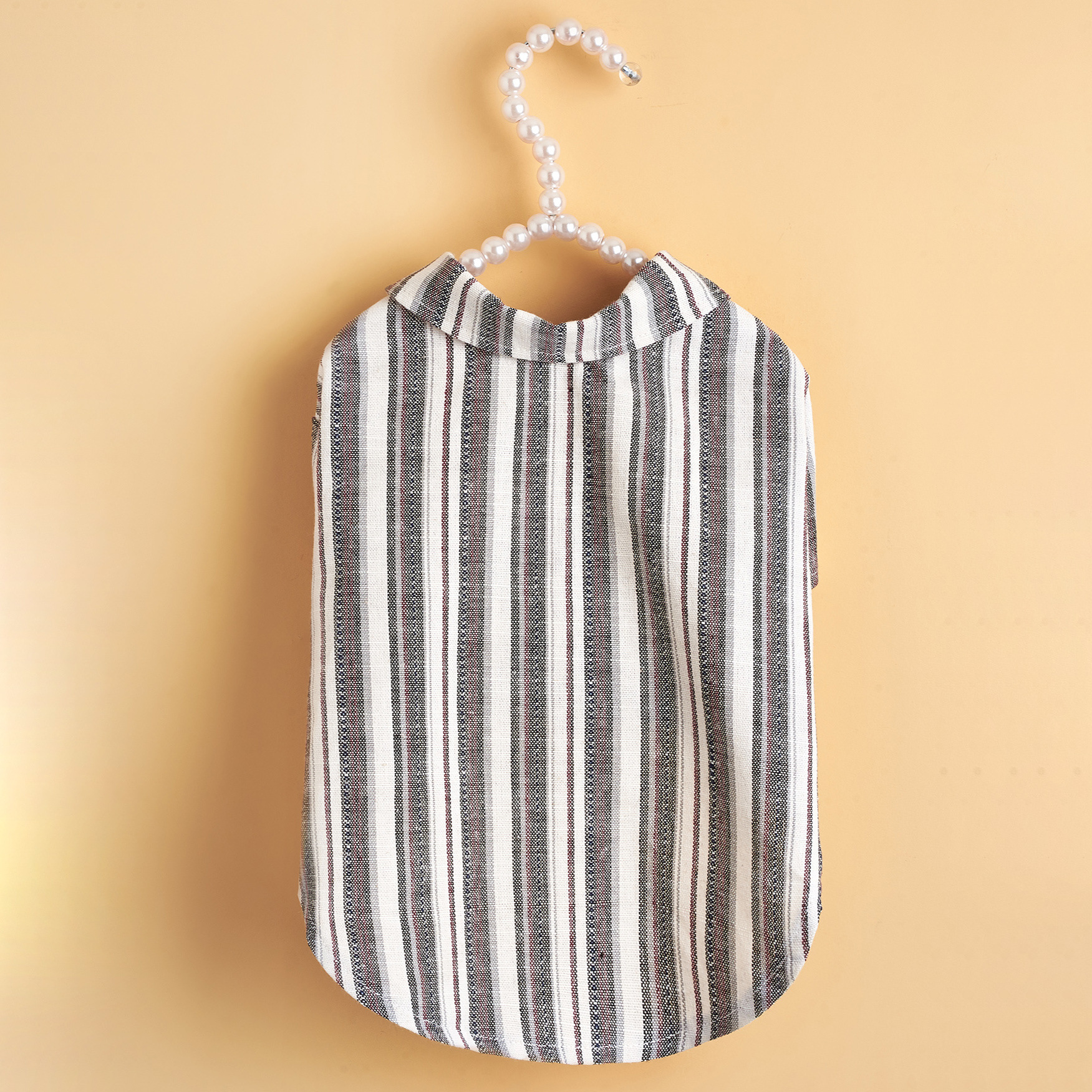 2021 여름 새로운 애완 동물 의류 면 린넨 스트라이프 개 셔츠 귀여운 크로스 보더 고양이 옷 개 옷스토어 가기
