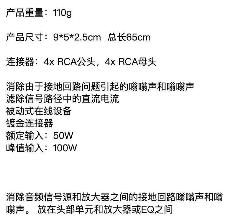 汽车4通道RCA音频噪声滤波器音频器接地回路隔离器汽车立体声50W