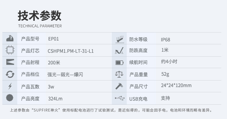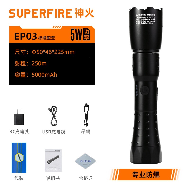 • EP05-전력 3W + 배터리 수명 8-16H [방폭 인증서 포함]