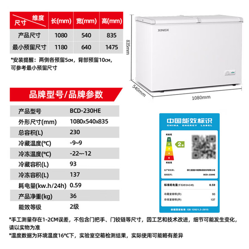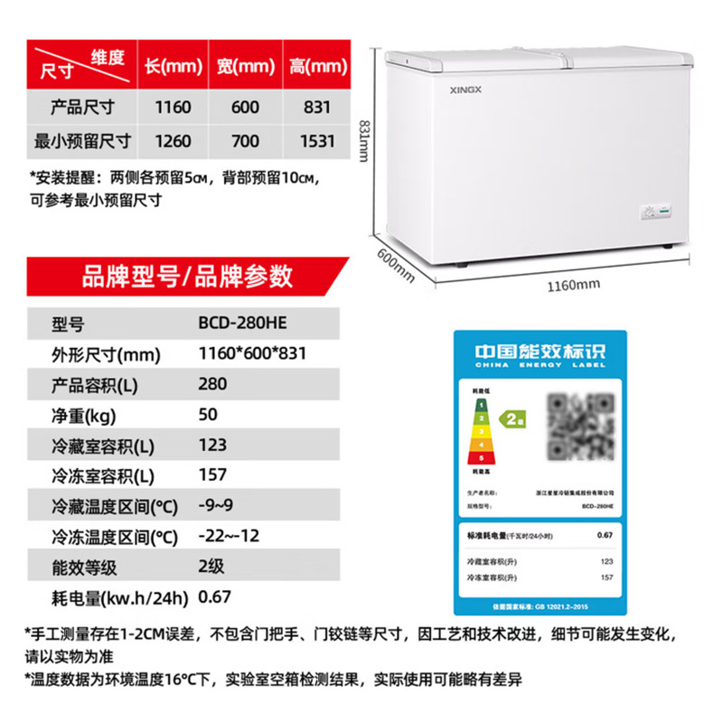 스타 더블온도 냉동고 230 버터플라이 도어 280 냉장고 냉동고 가정용 상업용 소형 냉장 보존 냉동 겸용스토어 가기