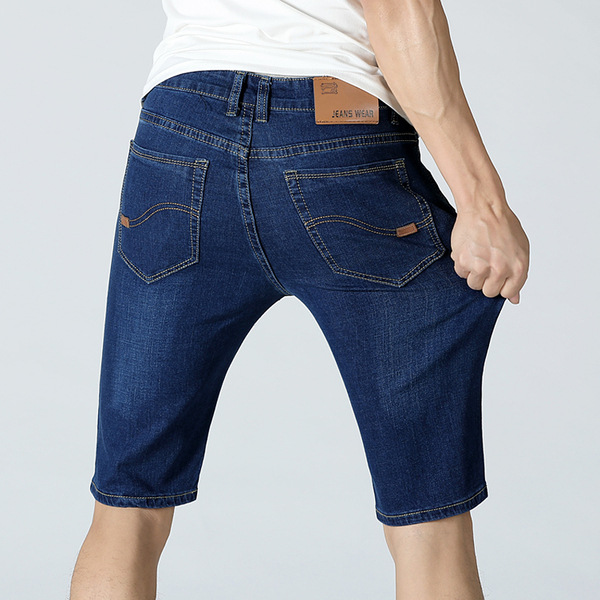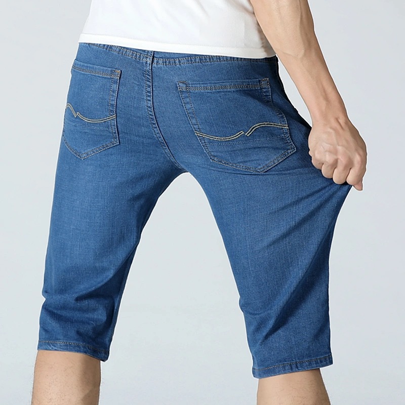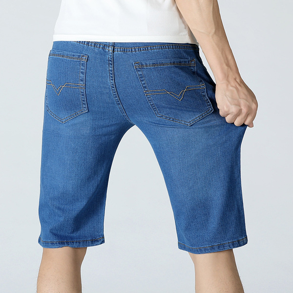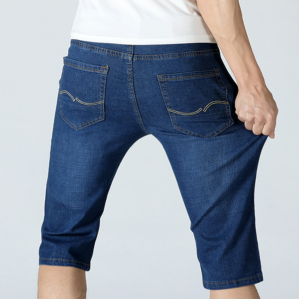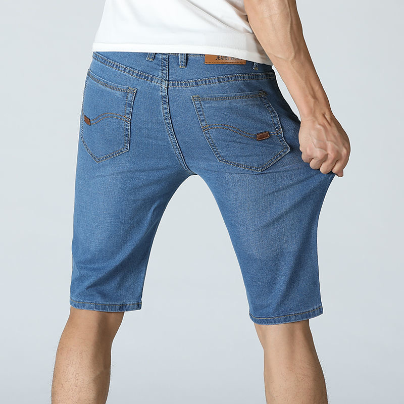 여름 얇은 남성용 슬림핏 블랙 데님 반바지 남성용 플러스 사이즈 5 점 바지 중간 길이 바지 청바지 트렌디스토어 가기