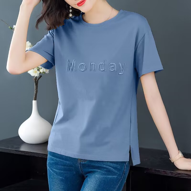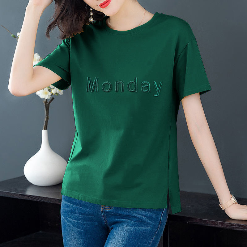 한국 스타일 반팔 티셔츠 여자의 여름 새로운 느슨한 플러스 사이즈 여성복 슬리밍 중년 어머니 자수 탑 옷스토어 가기