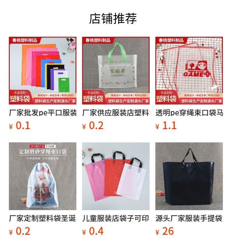 의류 토트백 인쇄 로고 여성 아동 의류 가방 재고 선물 가방 플라스틱 페 쇼핑백 도매