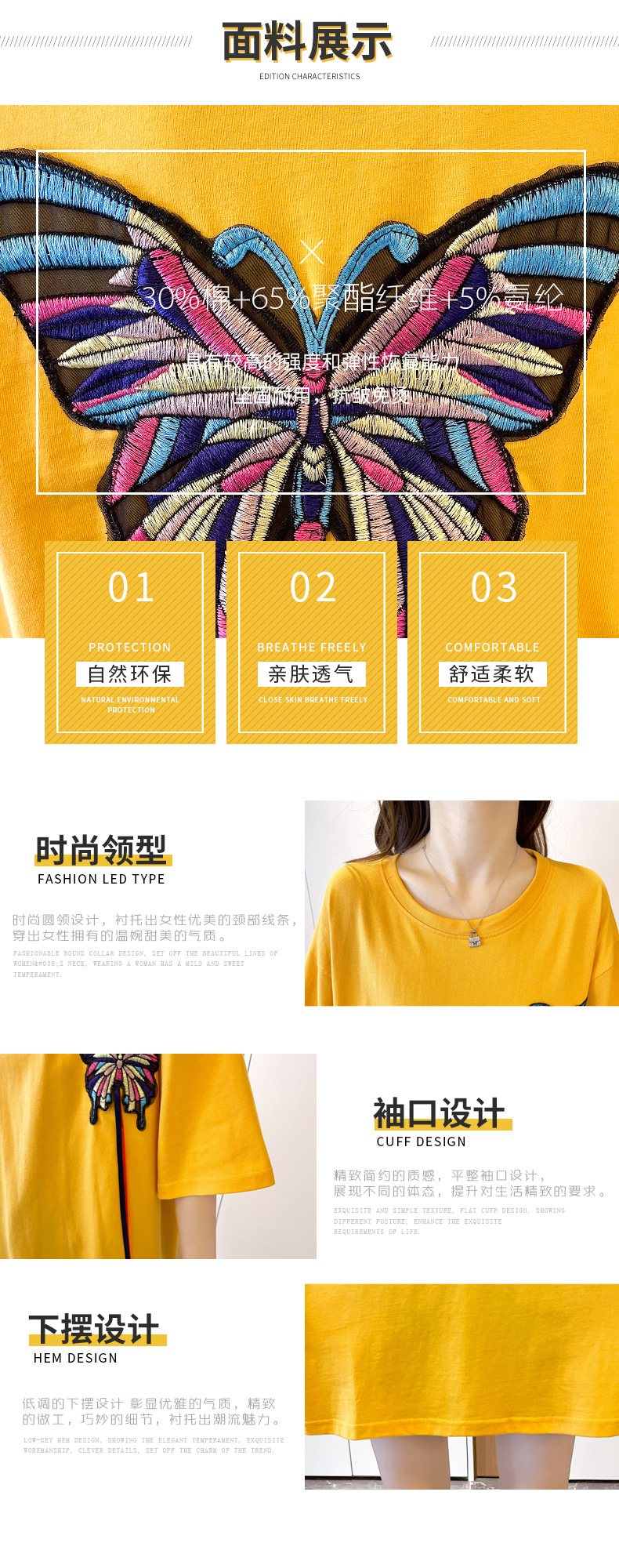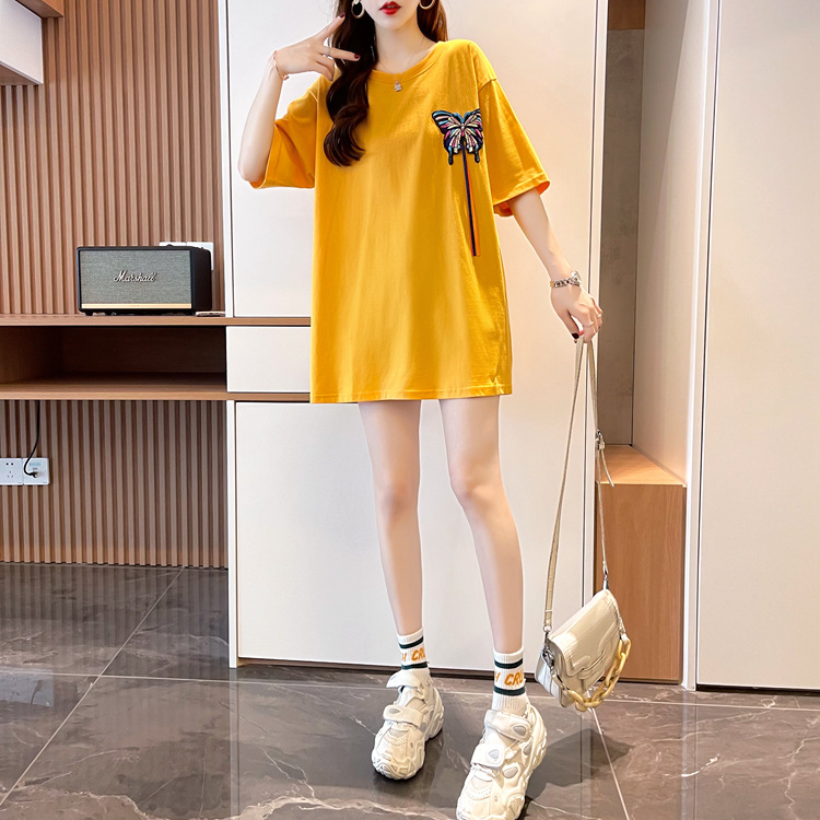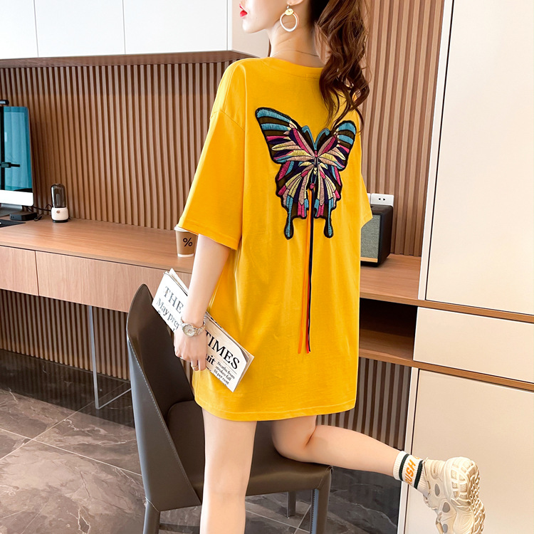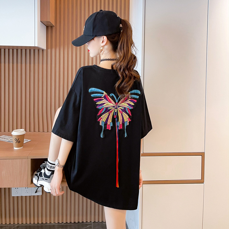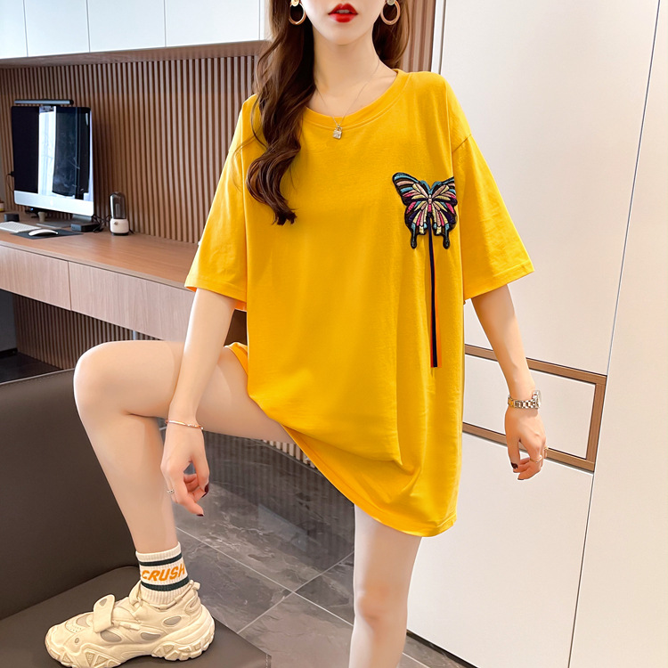 새로운 국경 2025 여름 디자인 인터넷 연예인 자수 반팔 티셔츠 여성 한국 스타일 패션 중간 길이 여성 의류 트렌드