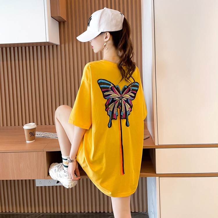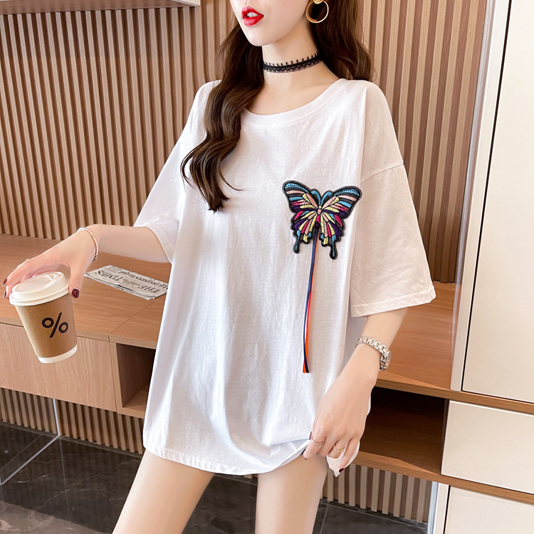 새로운 국경 2025 여름 디자인 인터넷 연예인 자수 반팔 티셔츠 여성 한국 스타일 패션 중간 길이 여성 의류 트렌드스토어 가기
