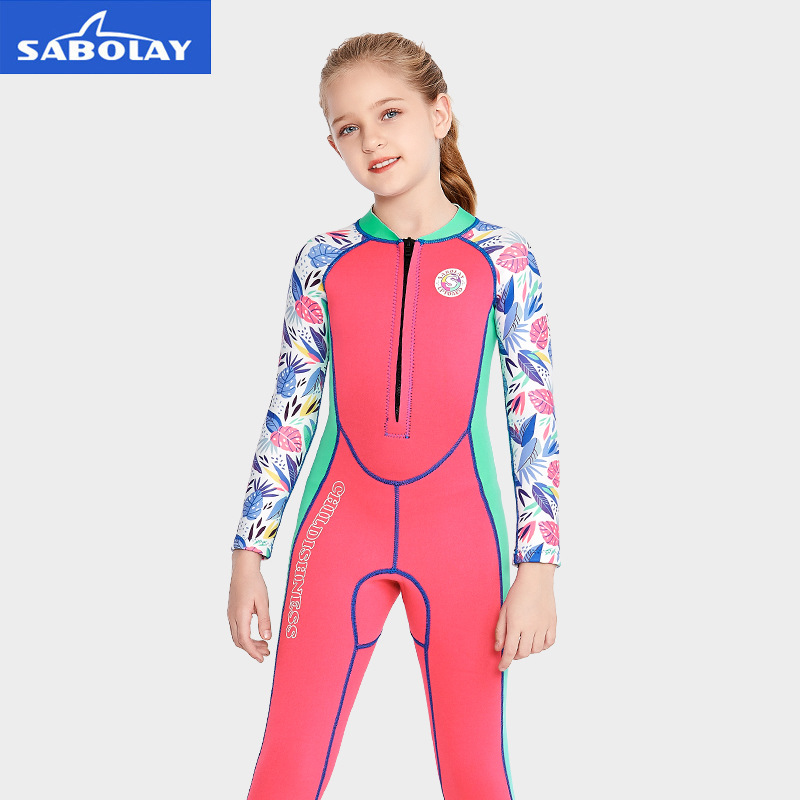 SABOLAY 새로운 어린이 다이빙 세트 2mm 방한 따뜻한 어린이 수영복 원피스 안티 압력 스노클링 서핑 세트스토어 가기