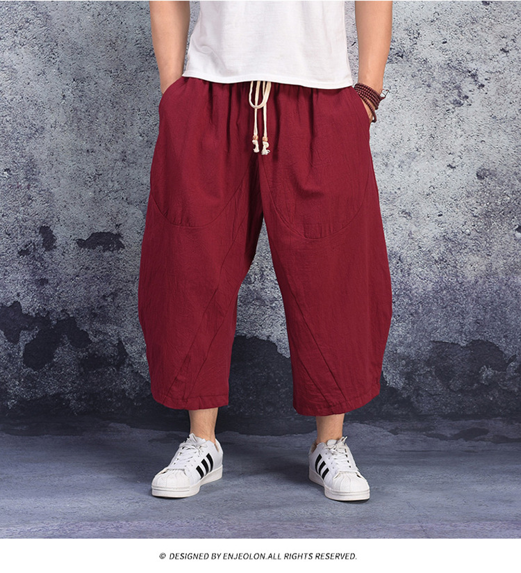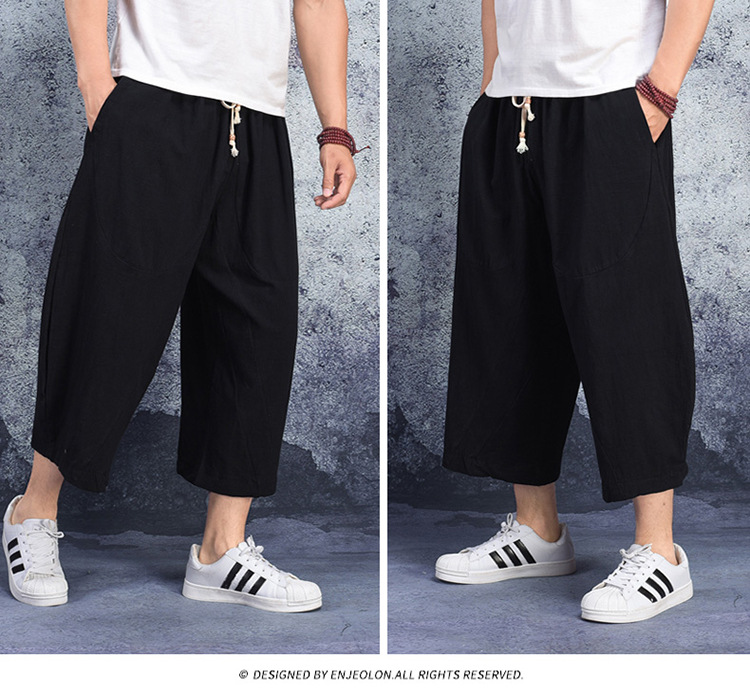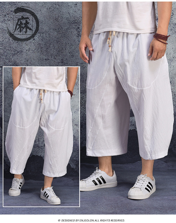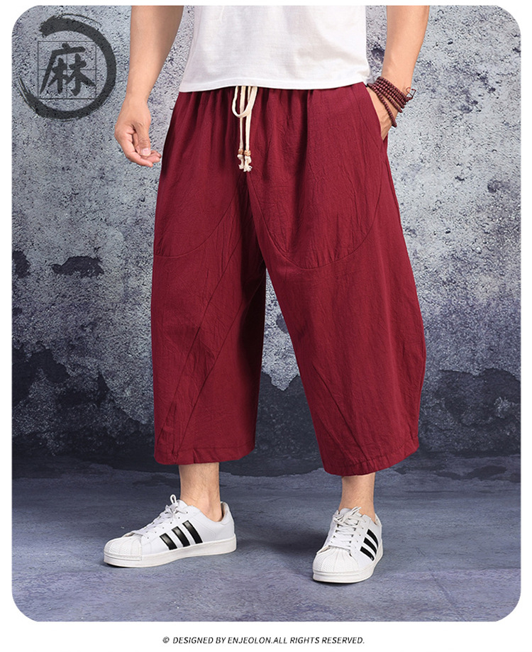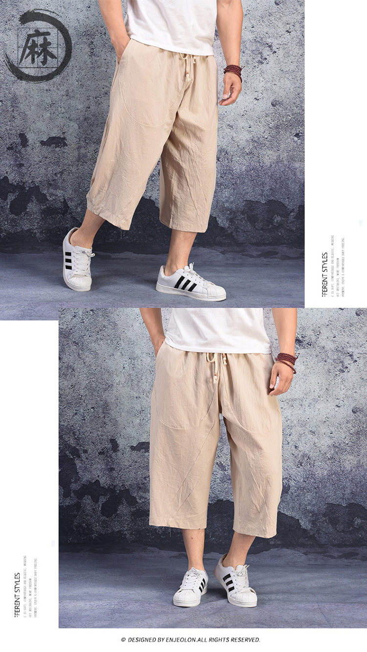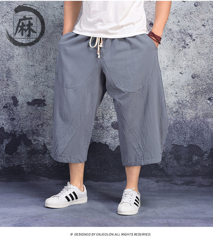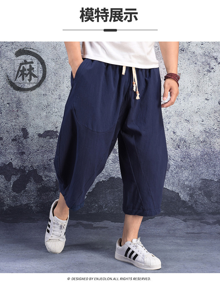2021 여름 새로운 남자의 플러스 사이즈 크롭 바지 중국 스타일 면 및 린넨 느슨한 Harlan 바지 린넨 와이드 레그 크롭 바지스토어 가기