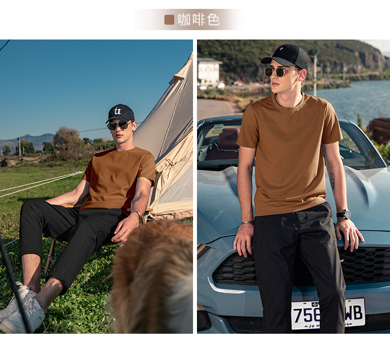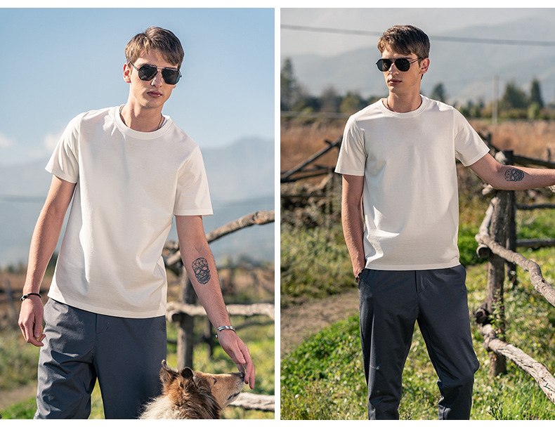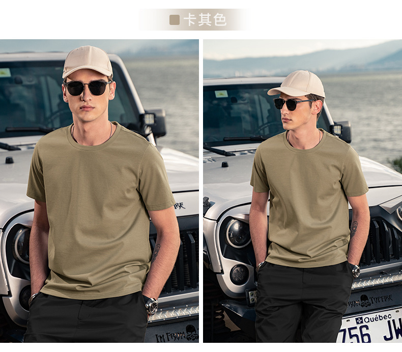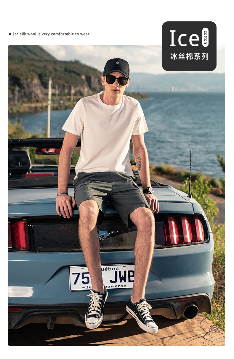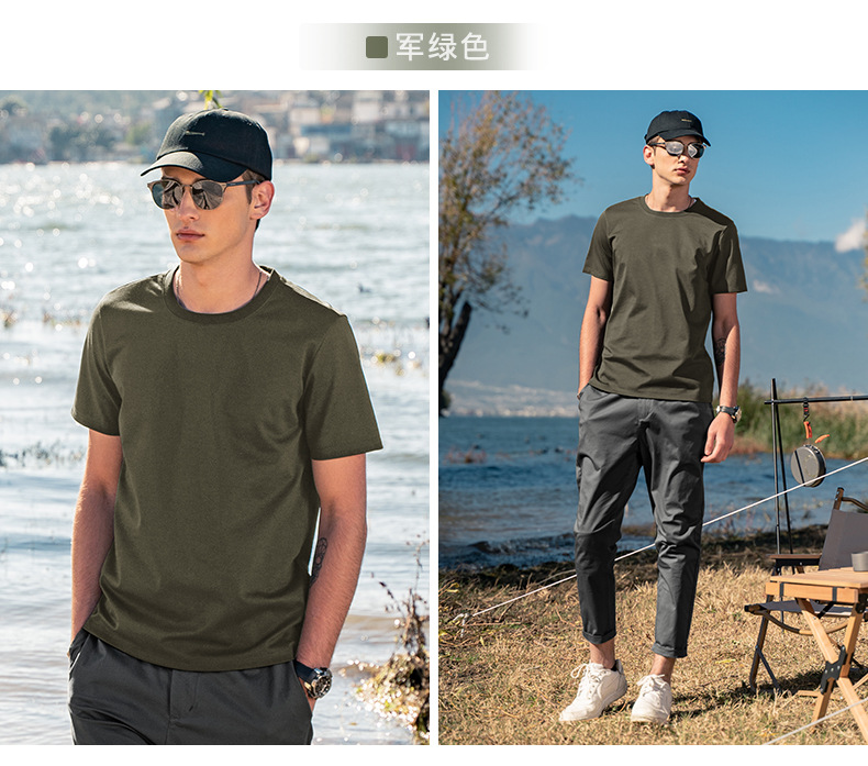 아이스 실크 코튼 남성용 반팔 티셔츠 심플 패션 여름 남성용 단색 반팔 머서라이즈드 베이스 셔츠 루즈한 티셔츠스토어 가기