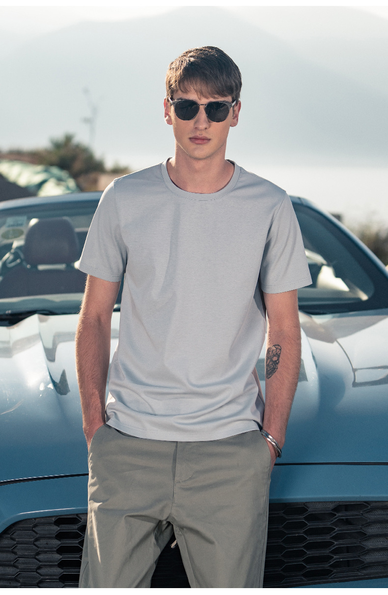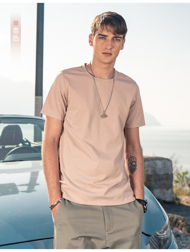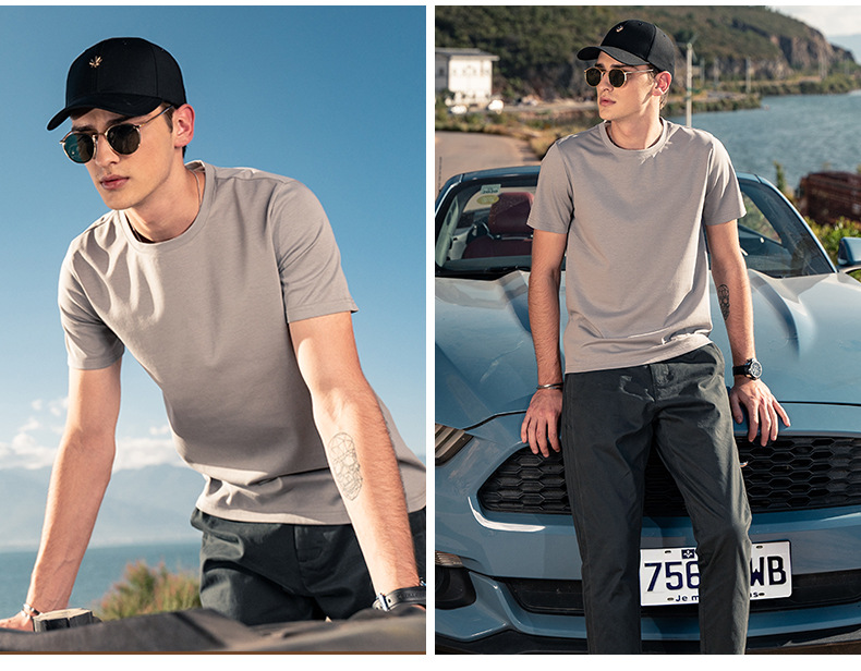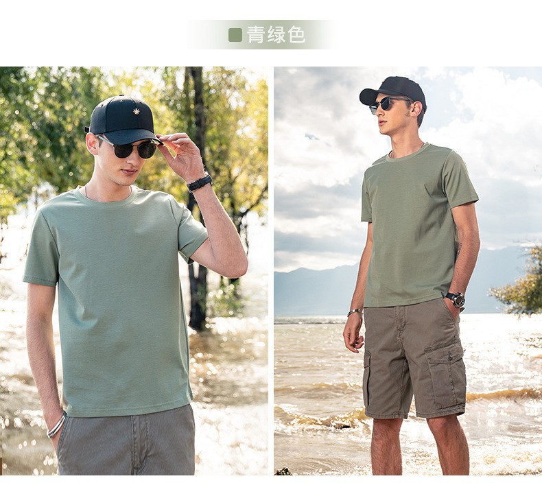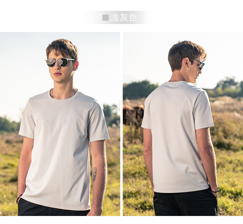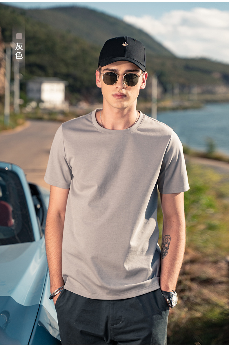 아이스 실크 코튼 남성용 반팔 티셔츠 심플 패션 여름 남성용 단색 반팔 머서라이즈드 베이스 셔츠 루즈한 티셔츠