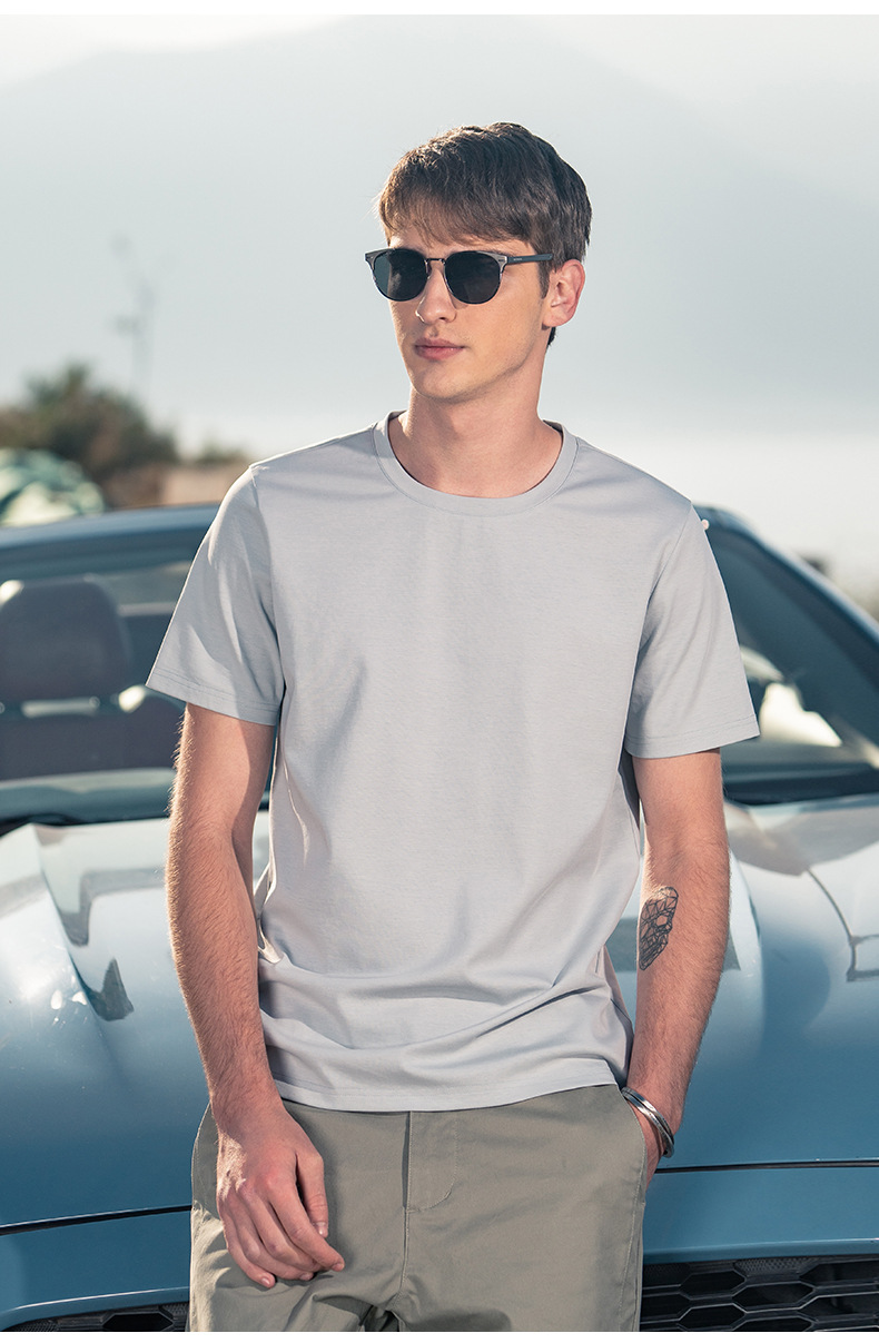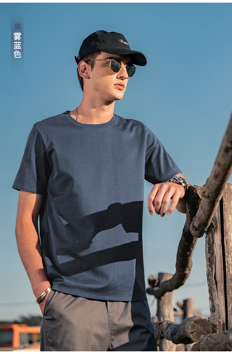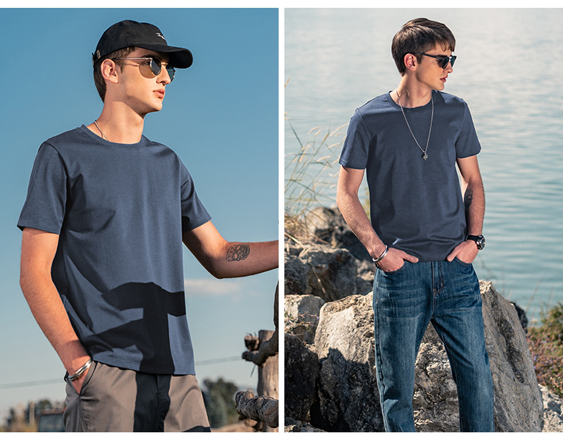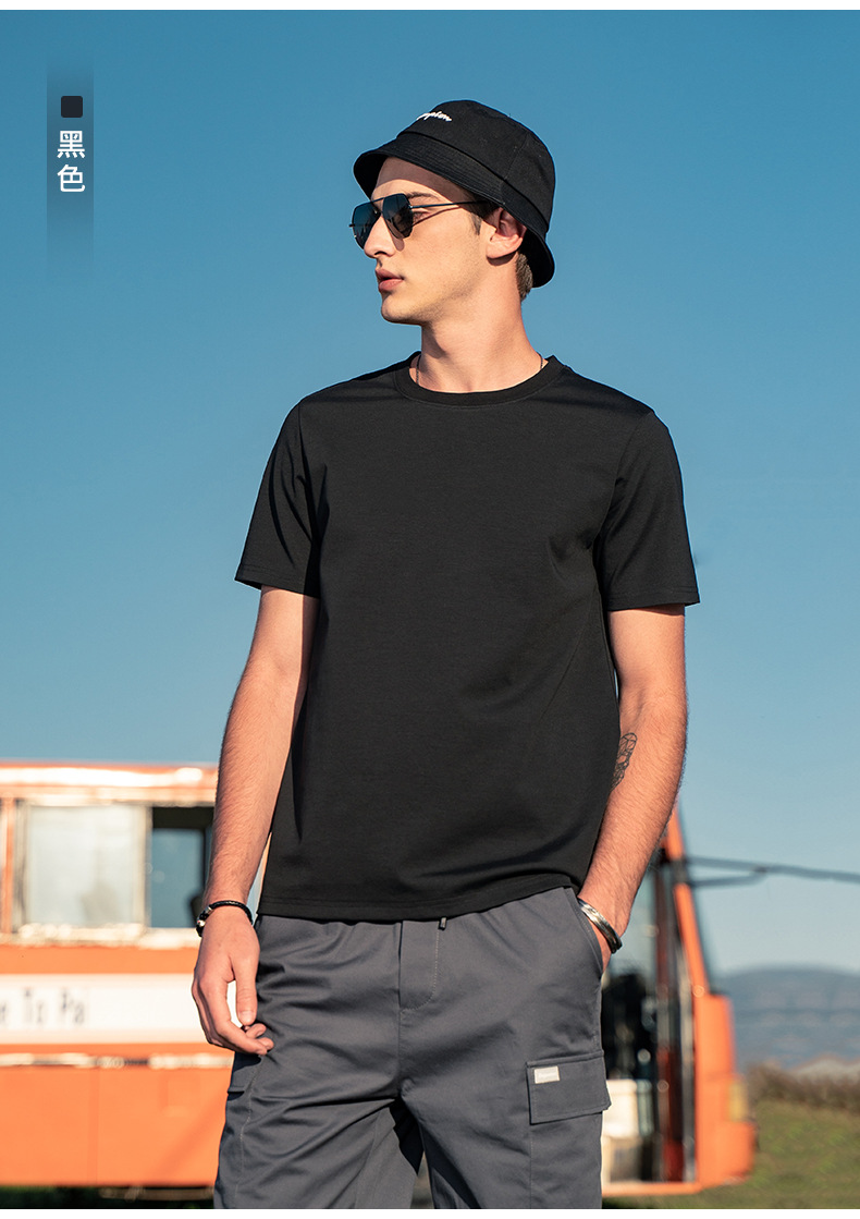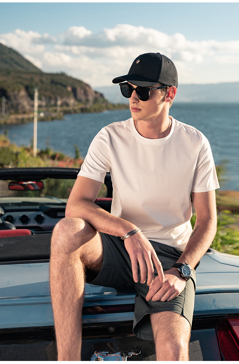 아이스 실크 코튼 남성용 반팔 티셔츠 심플 패션 여름 남성용 단색 반팔 머서라이즈드 베이스 셔츠 루즈한 티셔츠