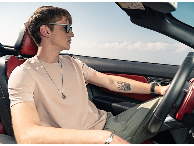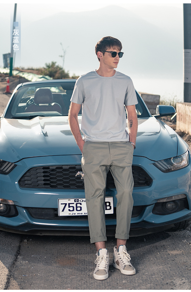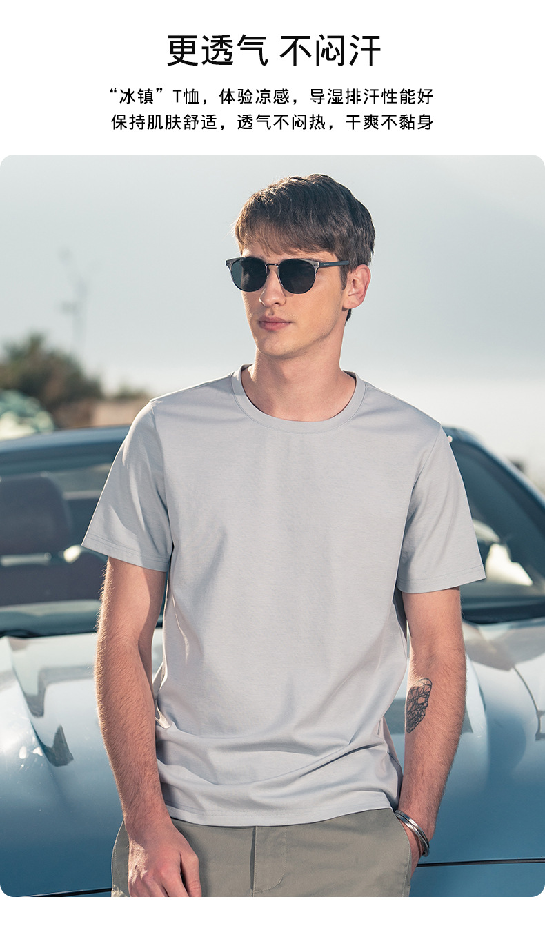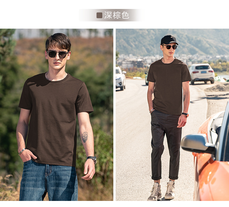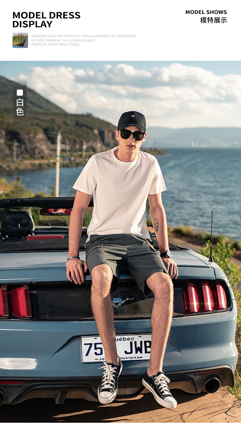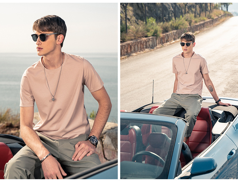 아이스 실크 코튼 남성용 반팔 티셔츠 심플 패션 여름 남성용 단색 반팔 머서라이즈드 베이스 셔츠 루즈한 티셔츠