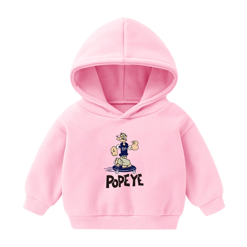 어린이용 후드티셔츠, 플리스 안감 아동복, 봄 신상품, 만화 공룡 프린트, 중소형 아동용 긴팔 상의, 국경 간 특별 공급
