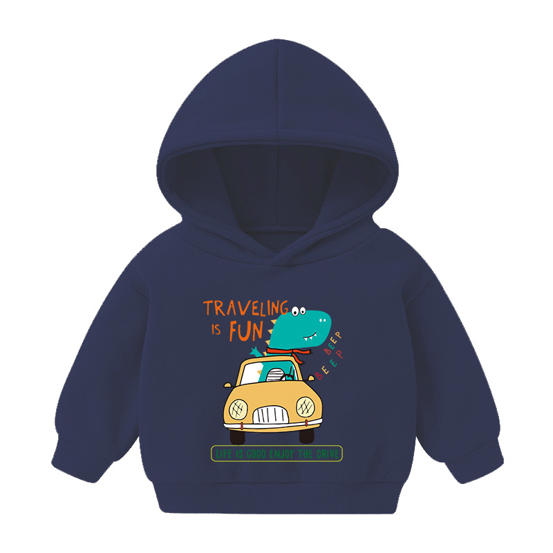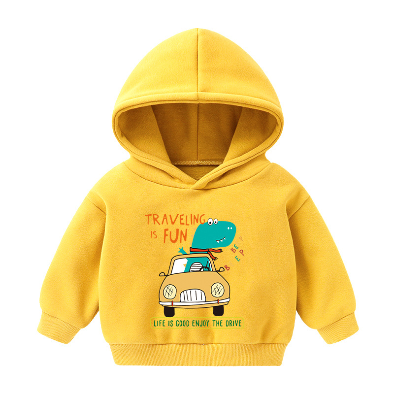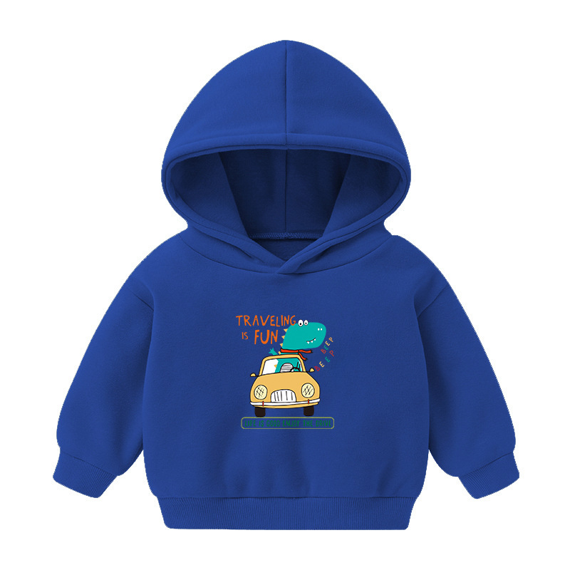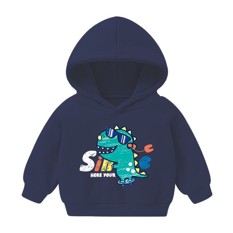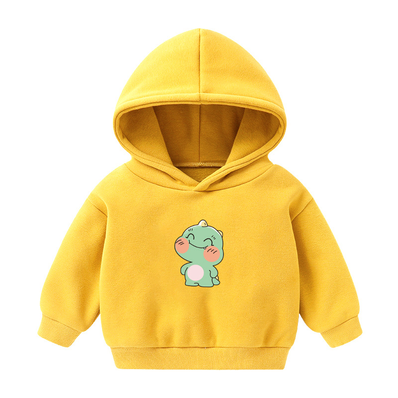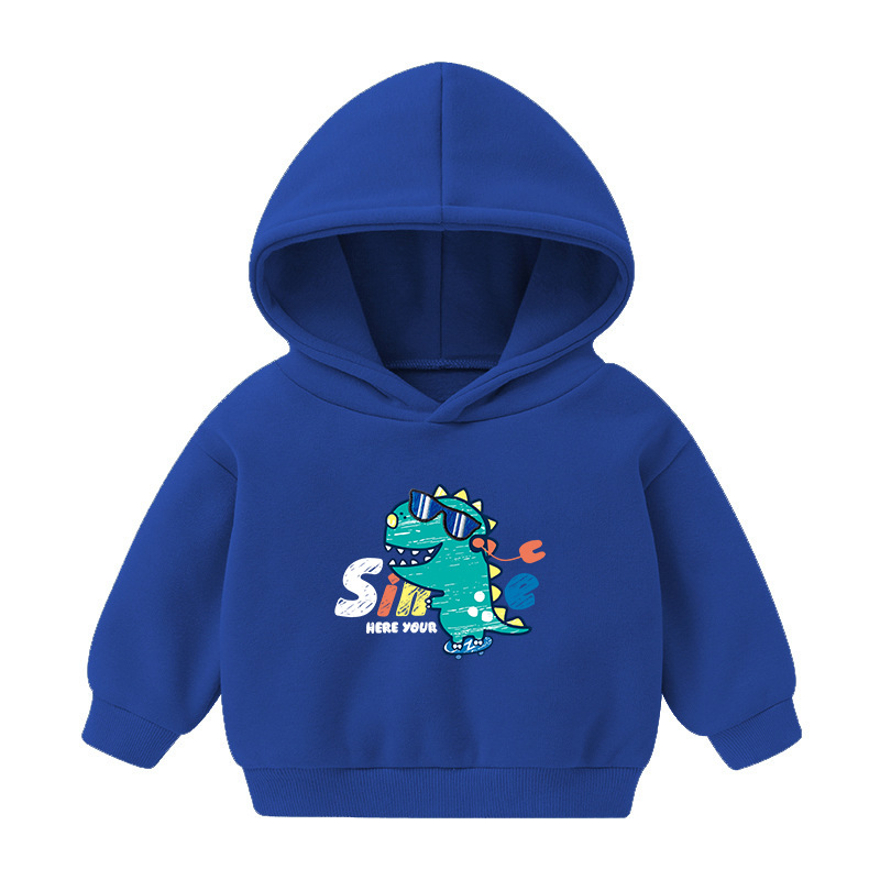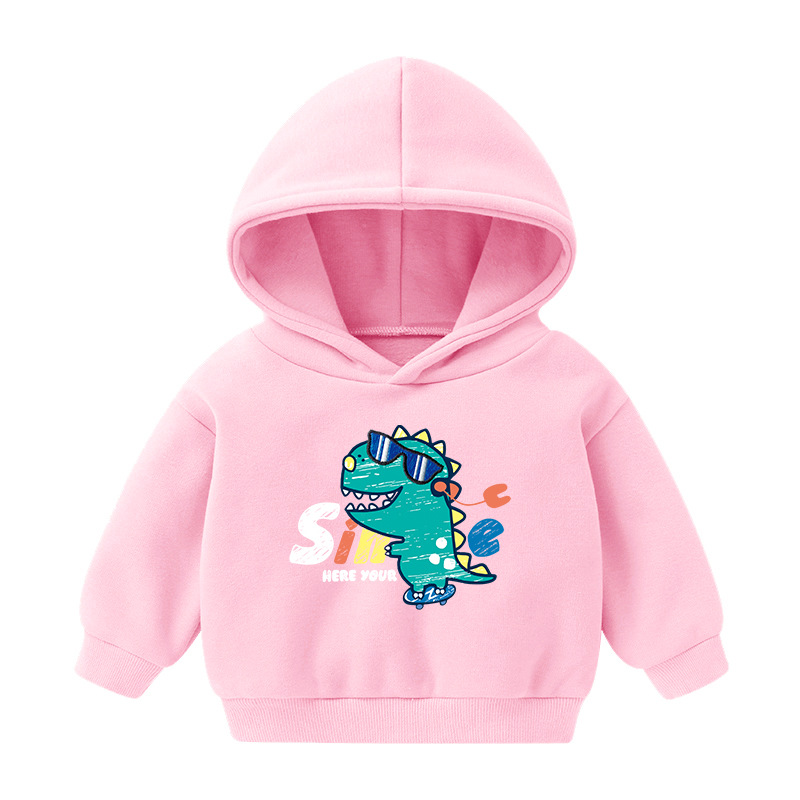 어린이용 후드티셔츠, 플리스 안감 아동복, 봄 신상품, 만화 공룡 프린트, 중소형 아동용 긴팔 상의, 국경 간 특별 공급스토어 가기