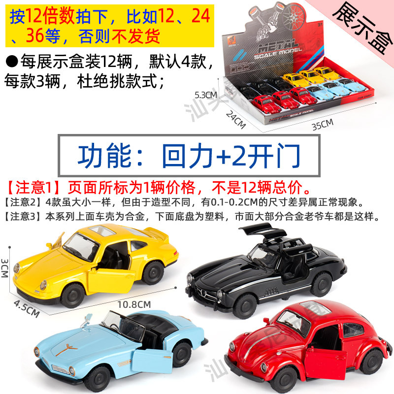 【注意3】展示盒装的按12倍数拍,如12、24、36等,否则不发,1比43的老爷车/跑车/皮卡/越野,有需要可以定制袋装,价格较便宜,但需整箱起订;