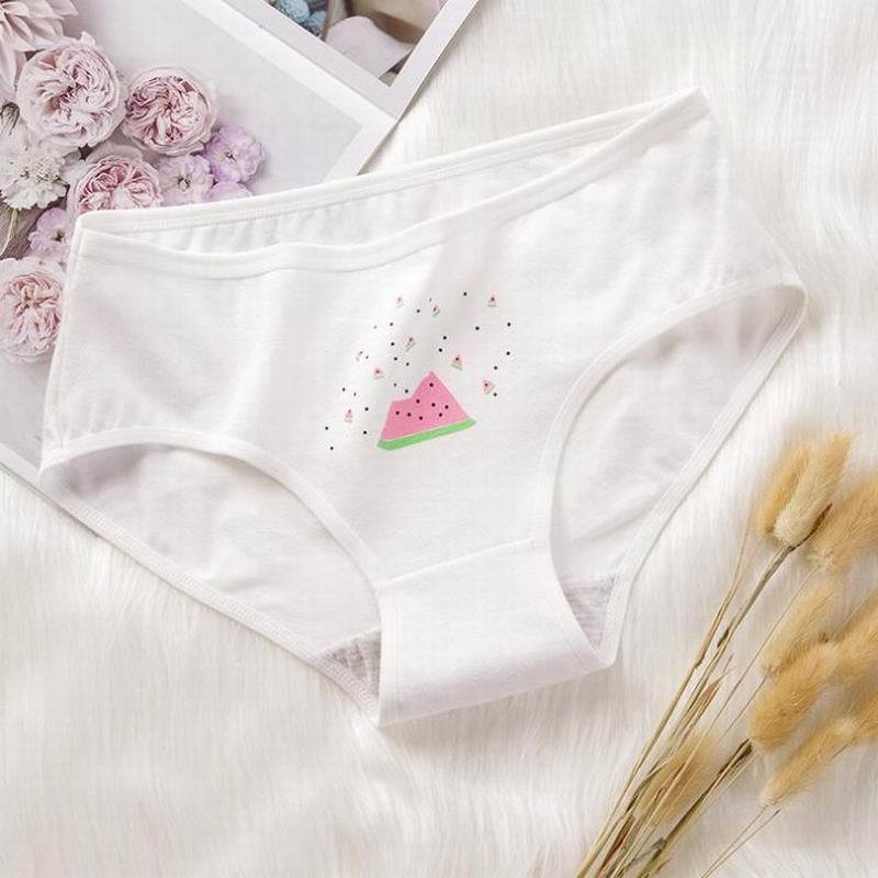 달콤한 간단한 일본식 소녀의 속옷 여성용 면 학생 과일 프린트 소녀의 중간 허리 팬티 편안하고 통기성스토어 가기