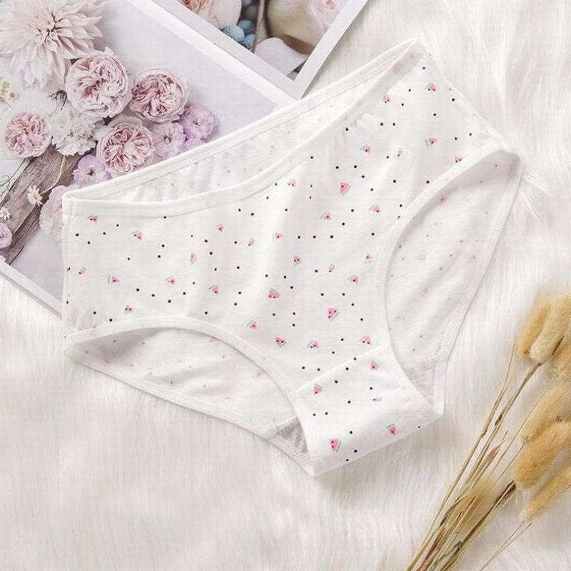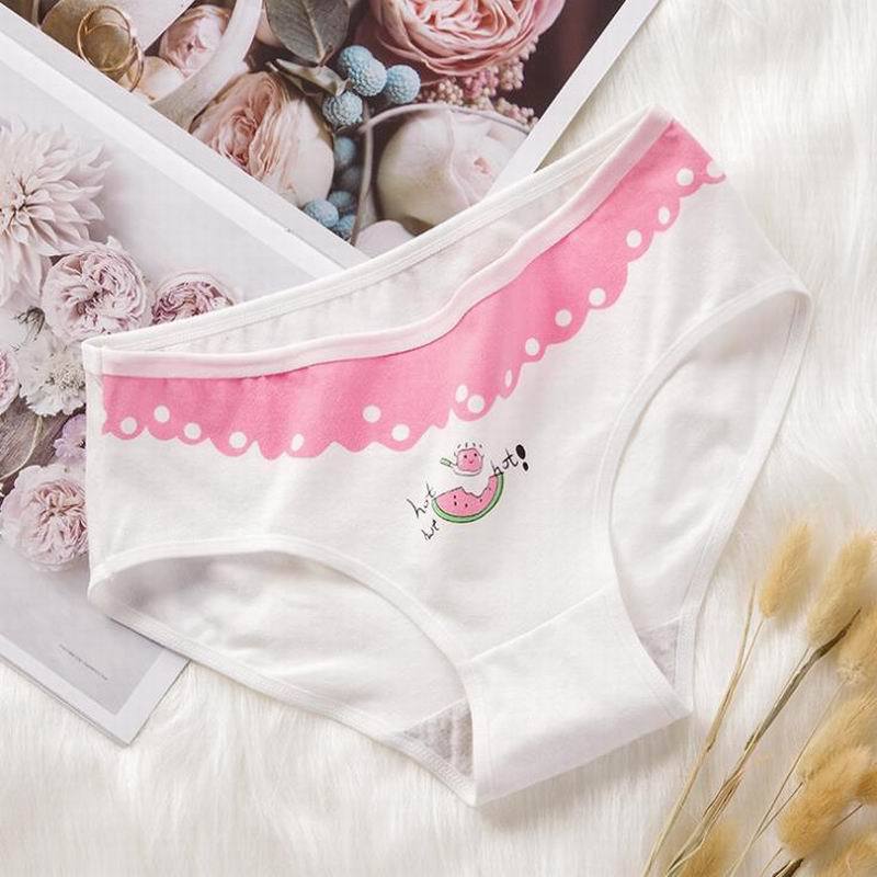 달콤한 간단한 일본식 소녀의 속옷 여성용 면 학생 과일 프린트 소녀의 중간 허리 팬티 편안하고 통기성
