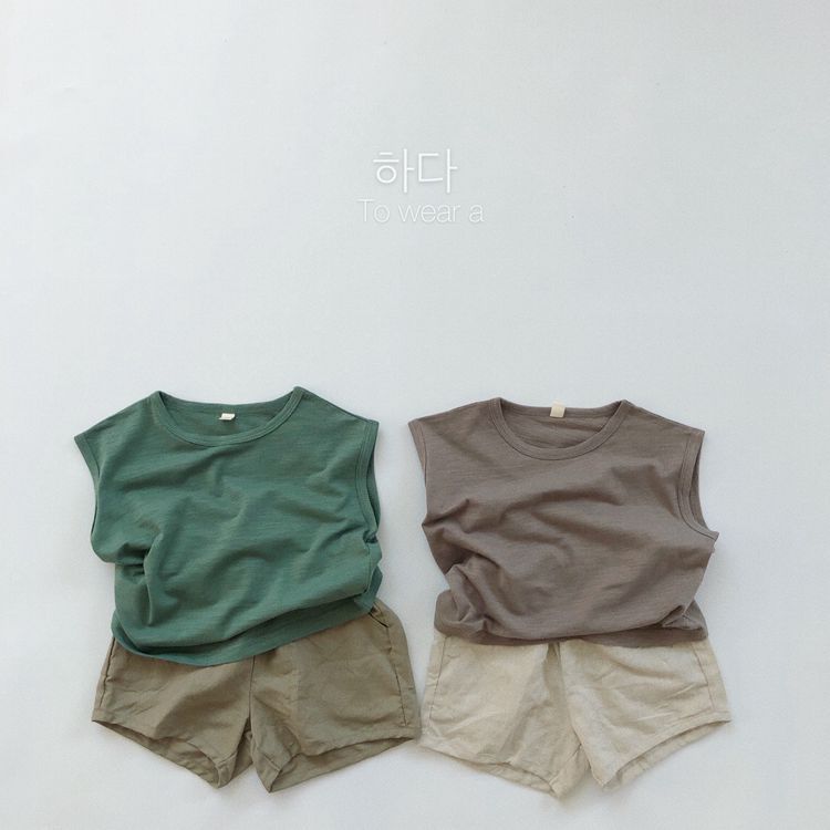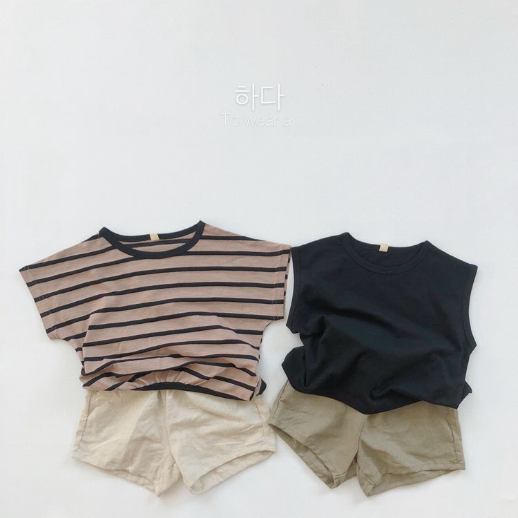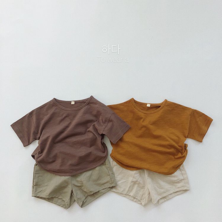 기본면과 린넨 질감 한국 어린이 린넨 핫 팬츠 소년 소녀 서양 스타일 유행 얇은 일본 워싱 반바지스토어 가기