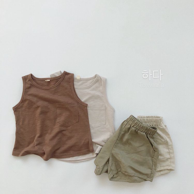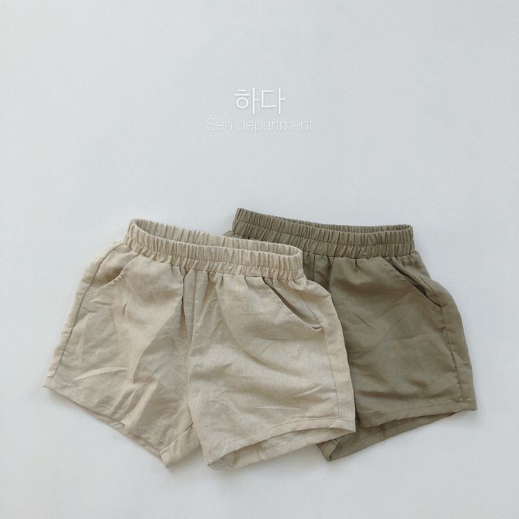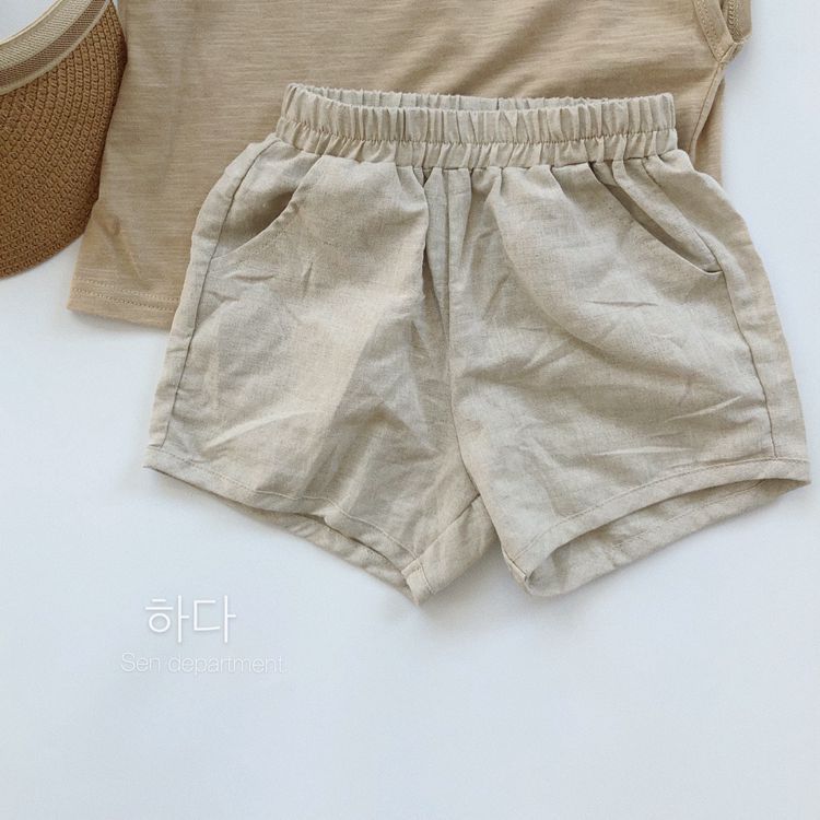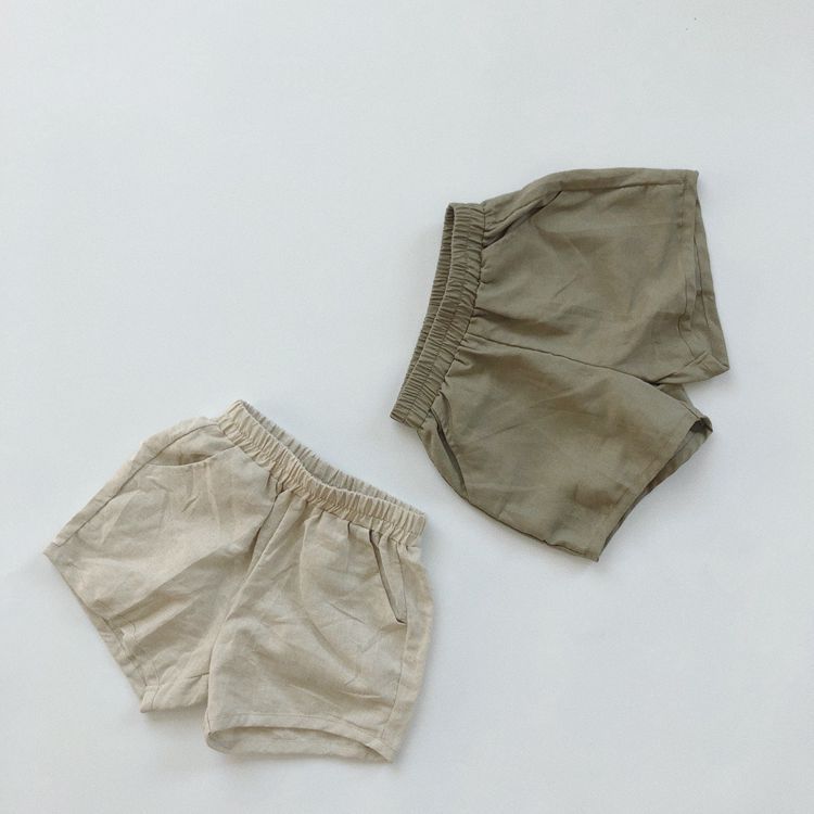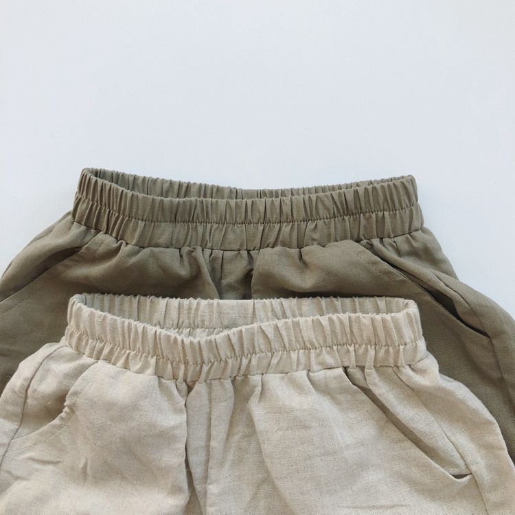 기본면과 린넨 질감 한국 어린이 린넨 핫 팬츠 소년 소녀 서양 스타일 유행 얇은 일본 워싱 반바지