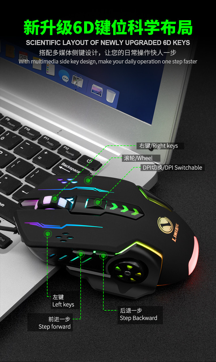 Li 마그네슘 V7 다채로운 기계식 마우스 USB 유선 노트북 데스크탑 핫 휠 e 스포츠 발광 게임 컴퓨터스토어 가기