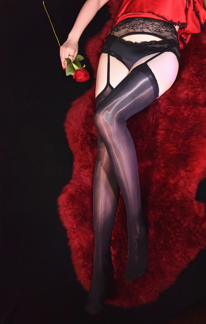 Little Hongniang 8D 오일 및 라이트 통합 양말 레이스 가터 스타킹 블랙 하이 투과성 오일 및 라이트 프리 4 면 중공 초박형 실크 스타킹