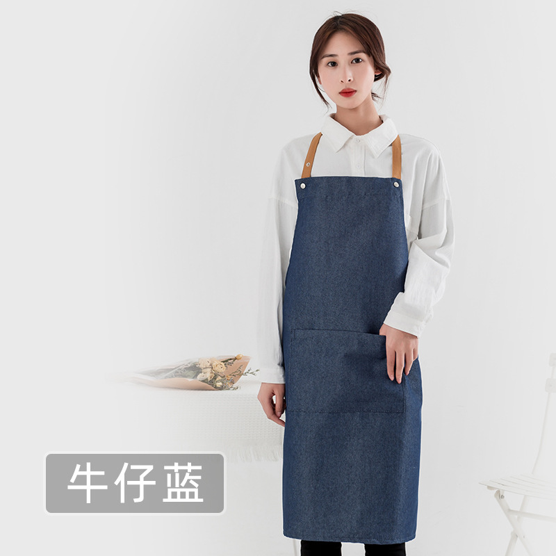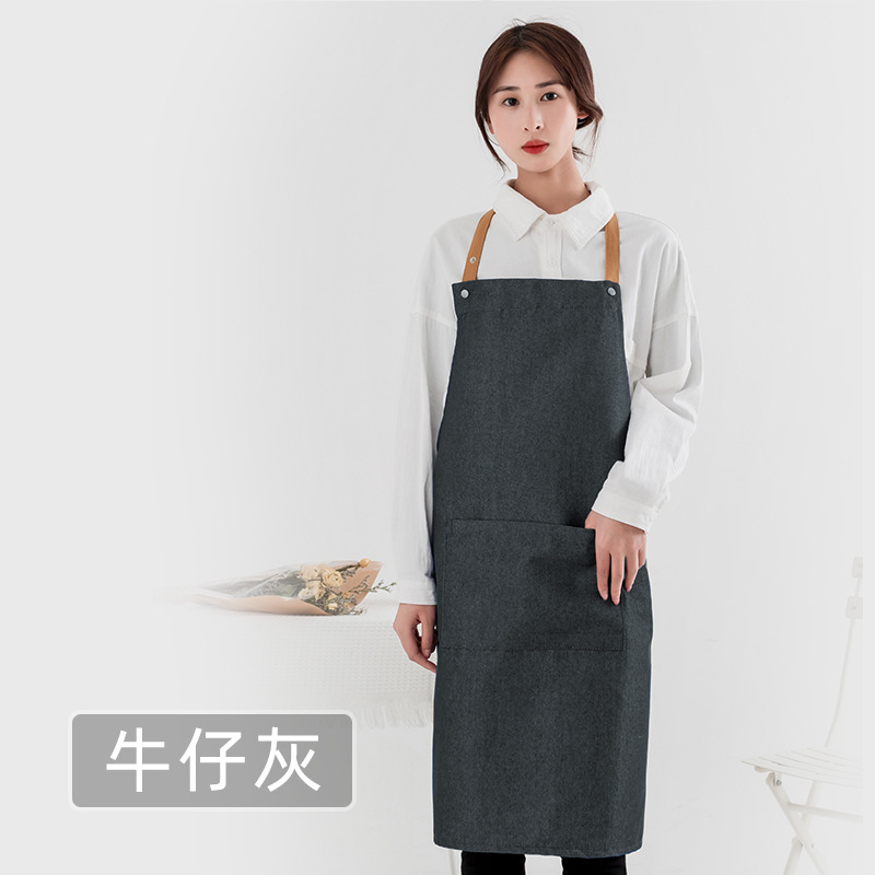 캔버스 데님 사용자 정의 로고 방오 가정용 앞치마 단색 카페 케이크 베이킹 샵 남성과 여성의 작업복스토어 가기