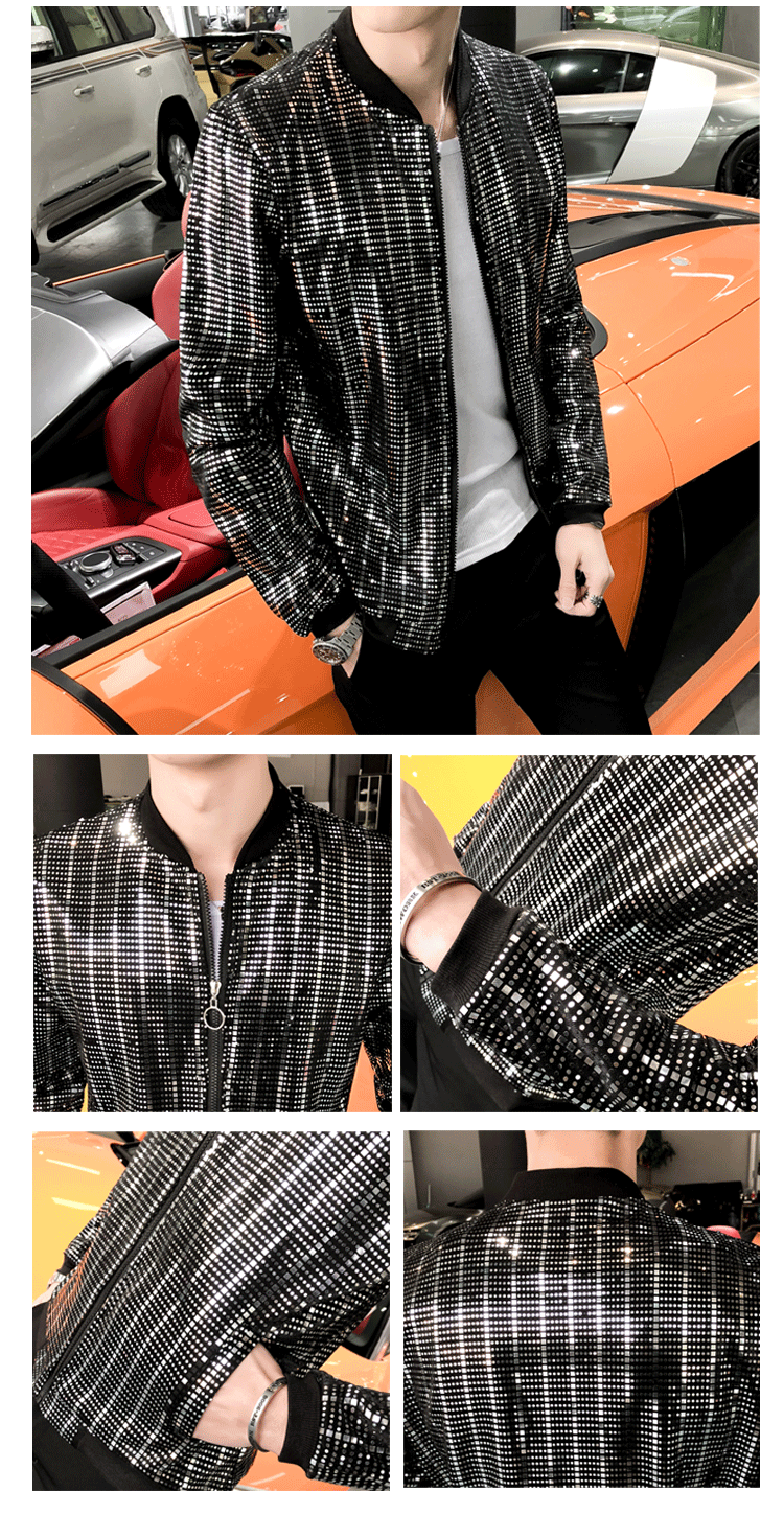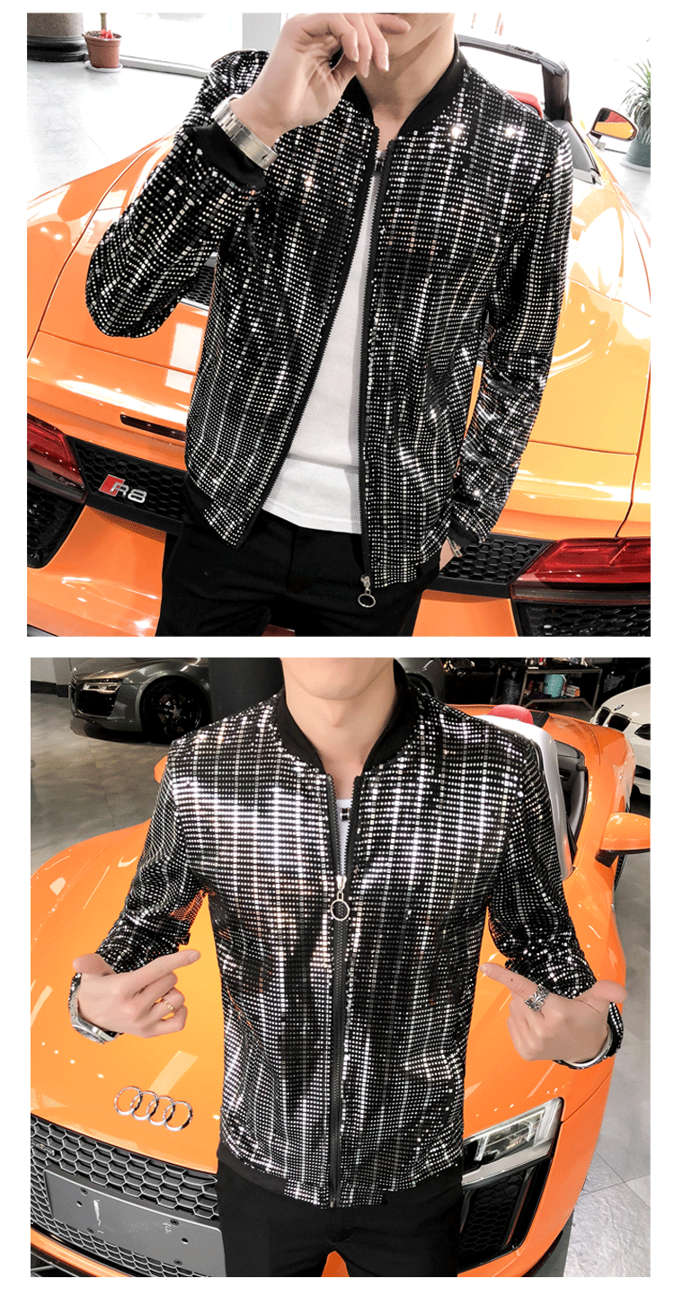 새로운 남성 개성 패션 재킷 그물 축하 나이트 샵 스타일리스트 리퀸 대형 재킷 소셜 의류 도매스토어 가기