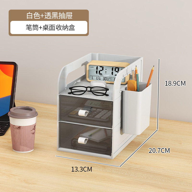 • 투명 블랙: 데스크탑 서랍 상자-2 책장 (구매 및 배달 펜 용기)