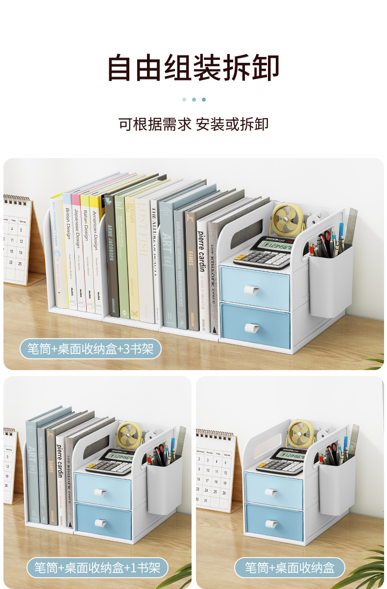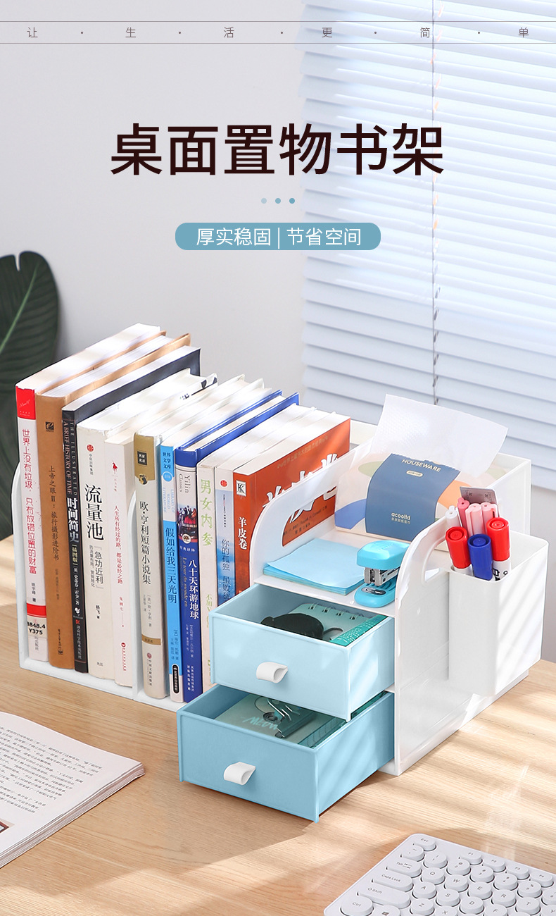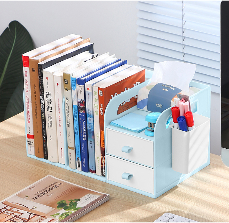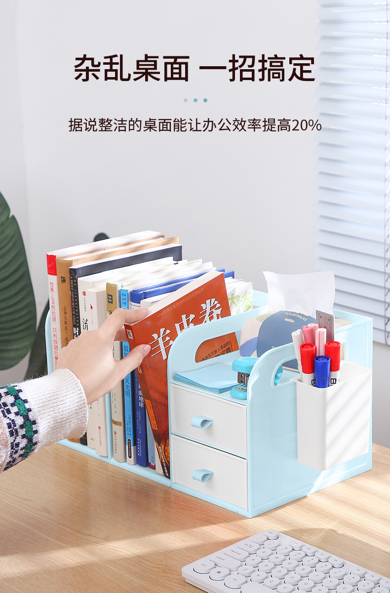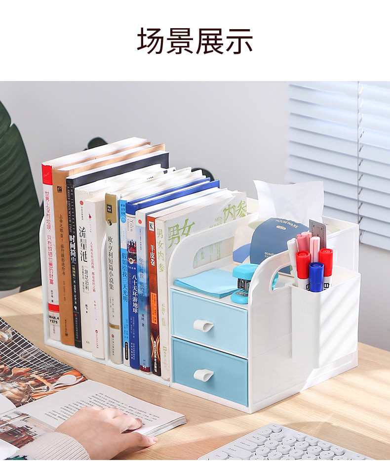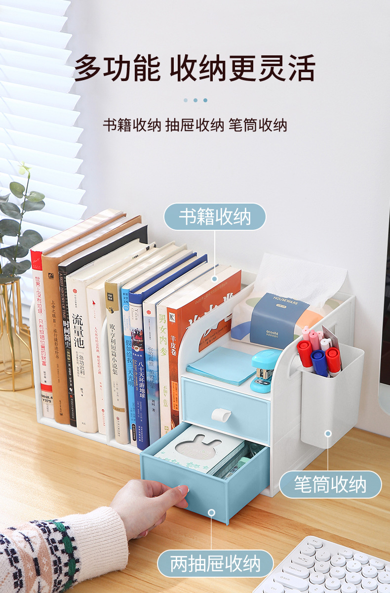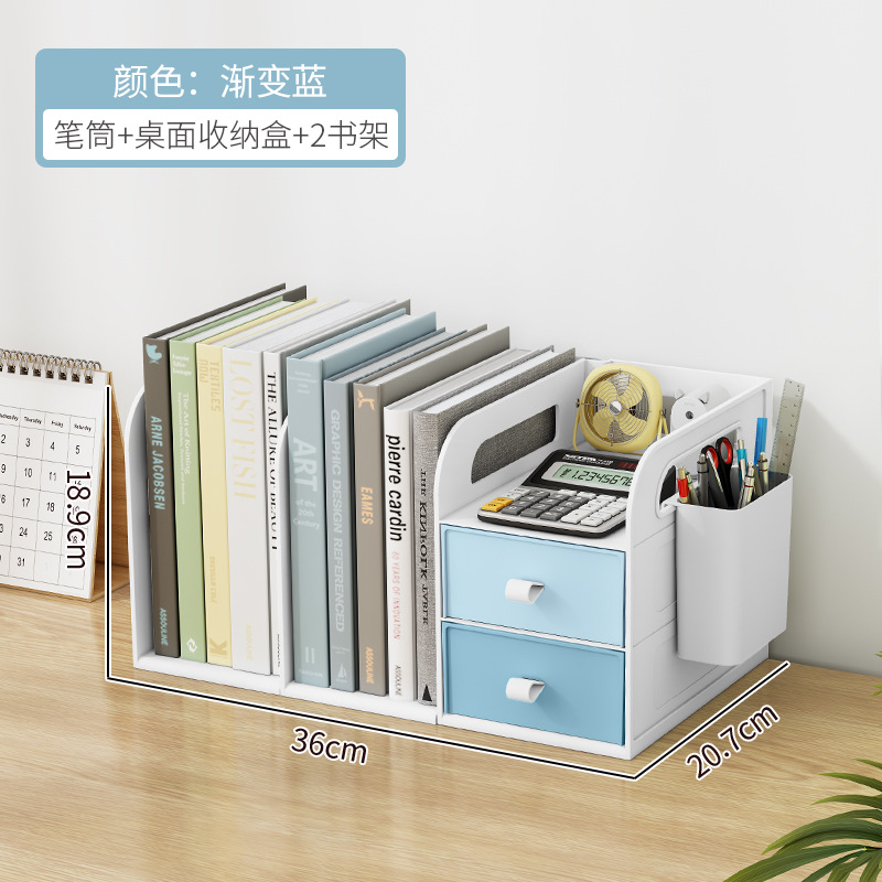 • 그라디언트 블루: 데스크탑 서랍 상자-2 책장 (구매 및 배송 펜 용기 포함)