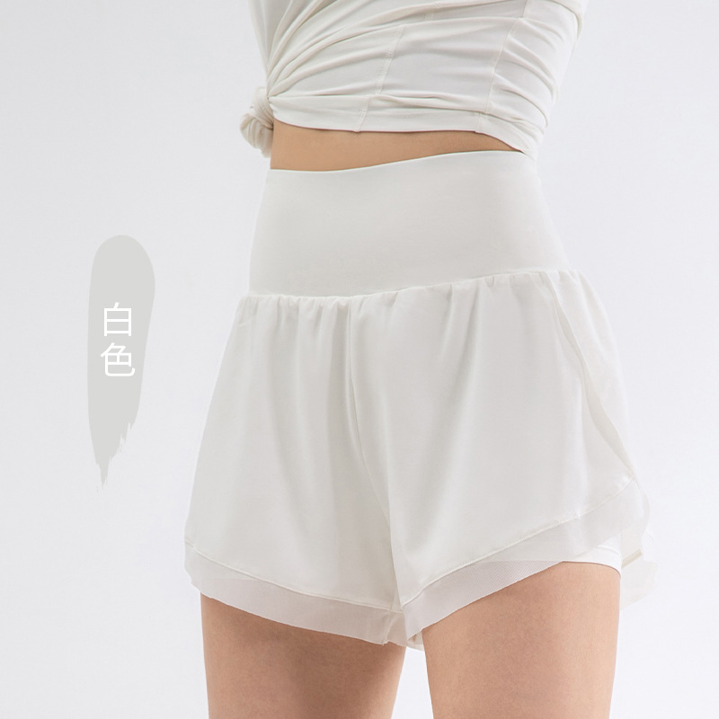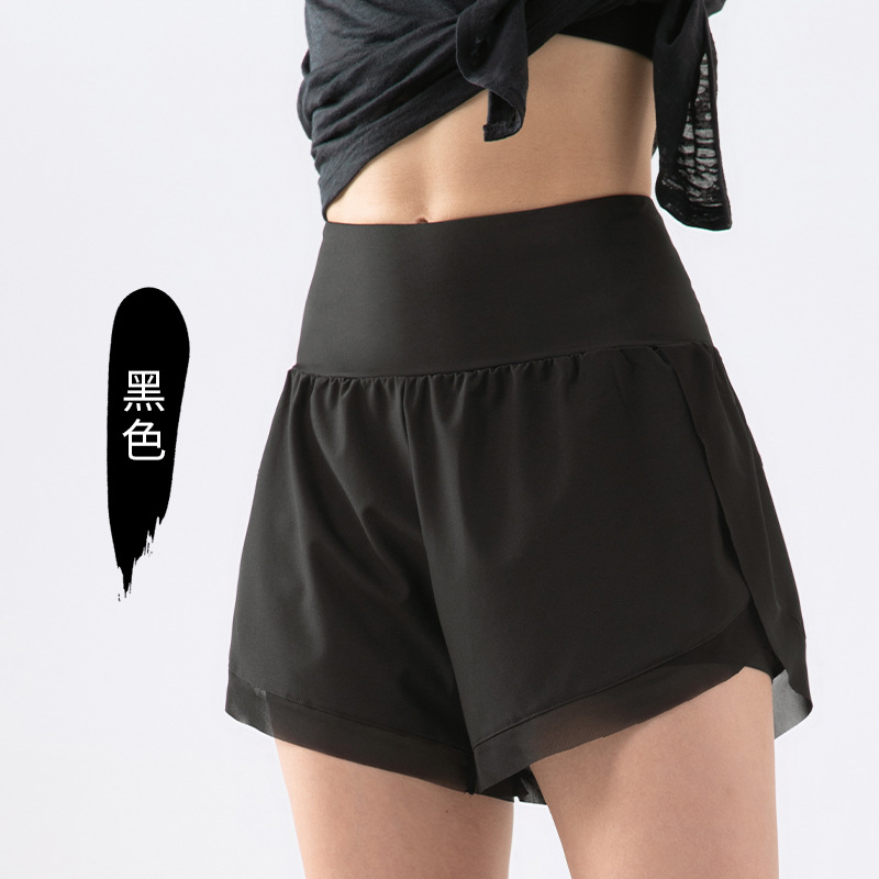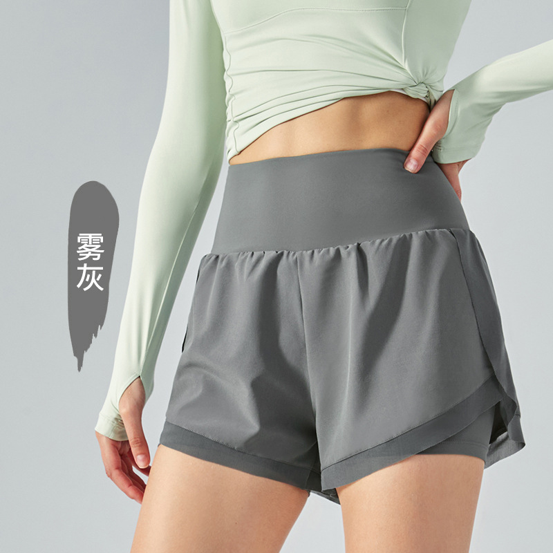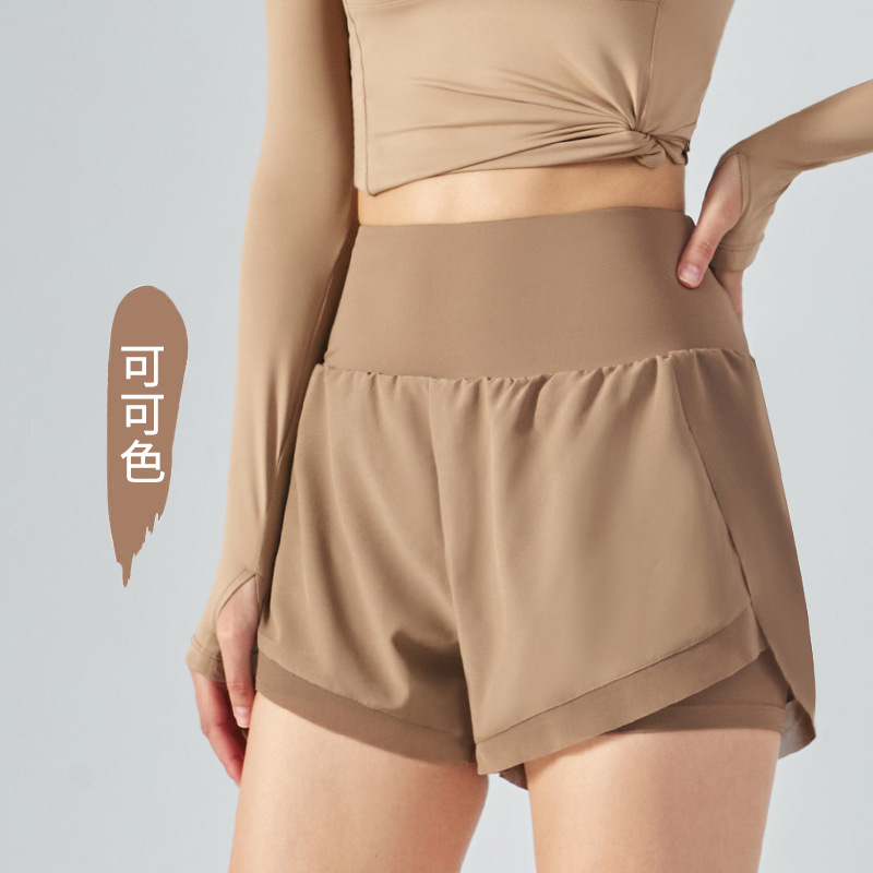 하이웨이스트 피트니스 반바지, 페이크 투피스 노출 방지 요가 팬츠, 루즈하고 캐주얼한 하이웨이스트 뱃살 조절 포켓 런닝 스포츠 팬츠