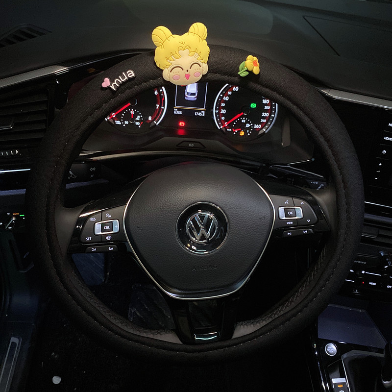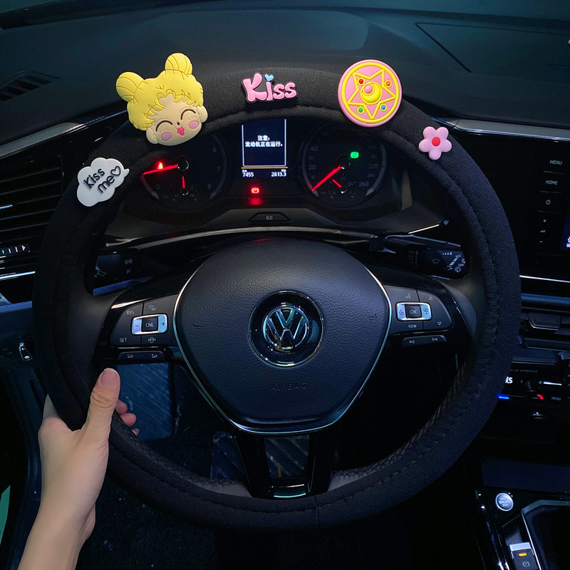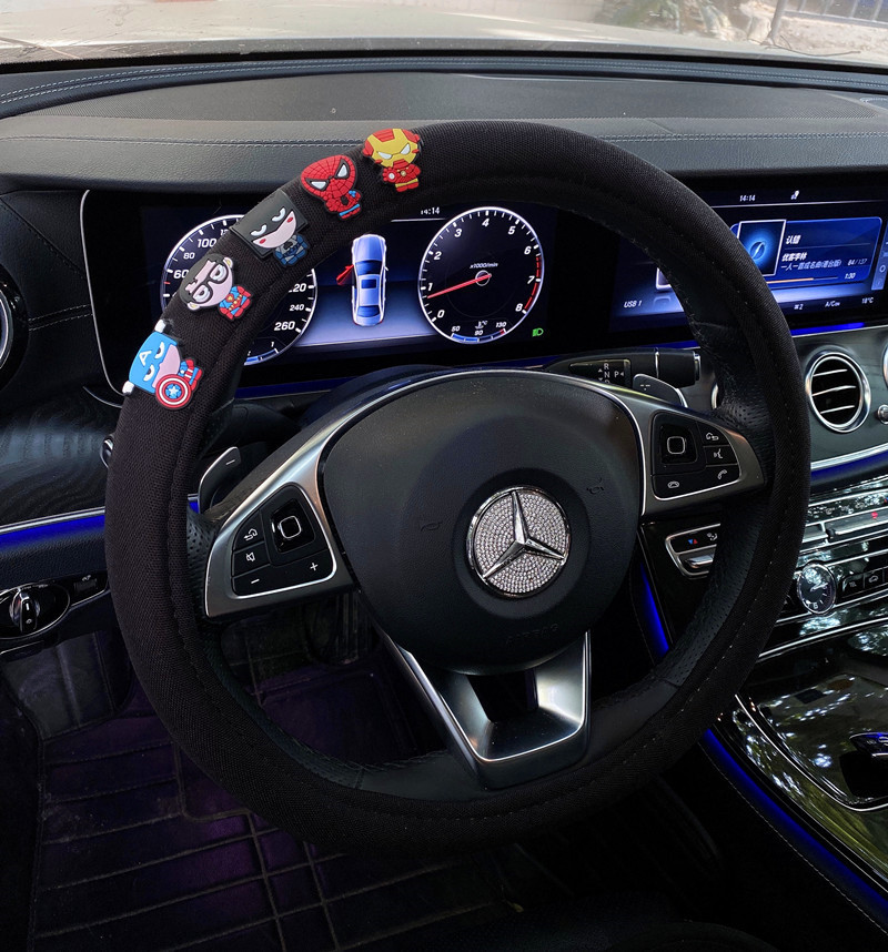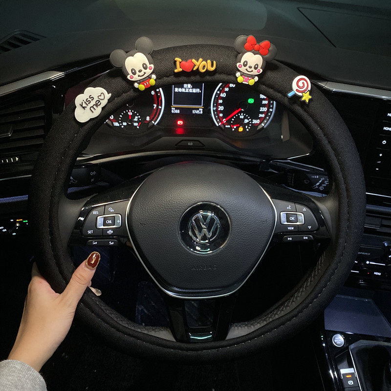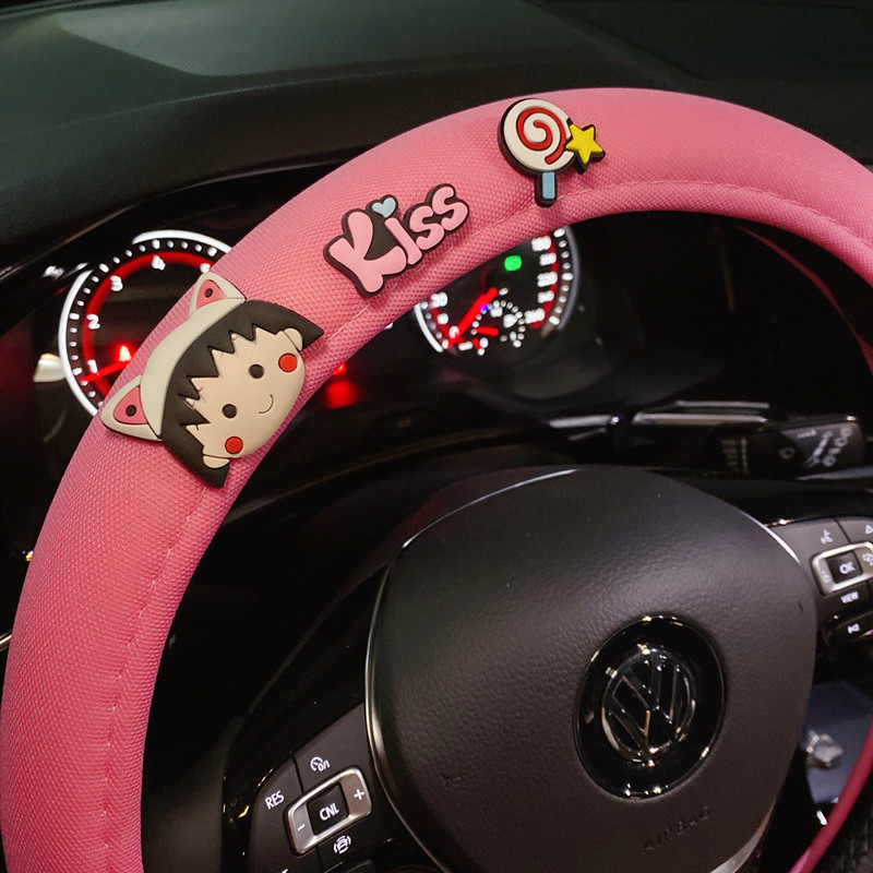 귀여운 만화 자동차 핸들 커버 사계절 유니버설 여성 인터넷 인기 여름 미끄럼 방지 통기성 땀 흡수 자동차 핸들 커버